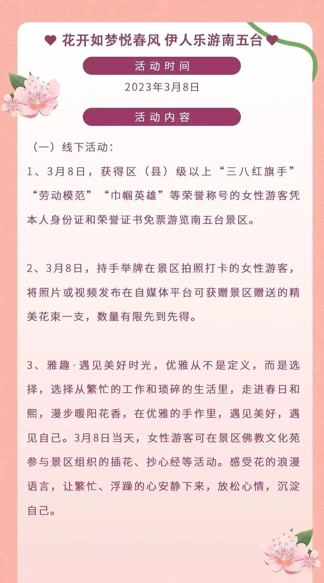 对女性游客免景区门票