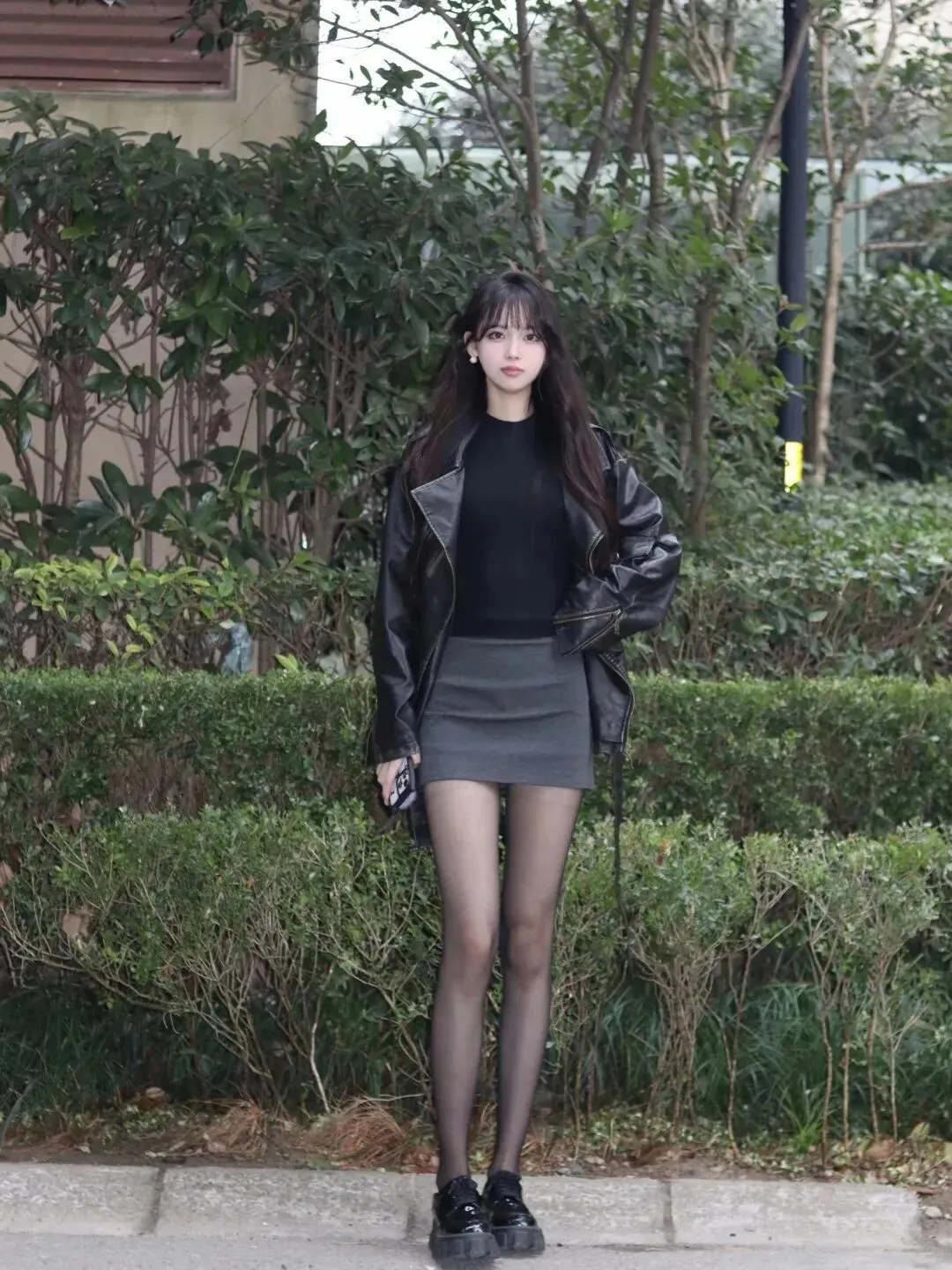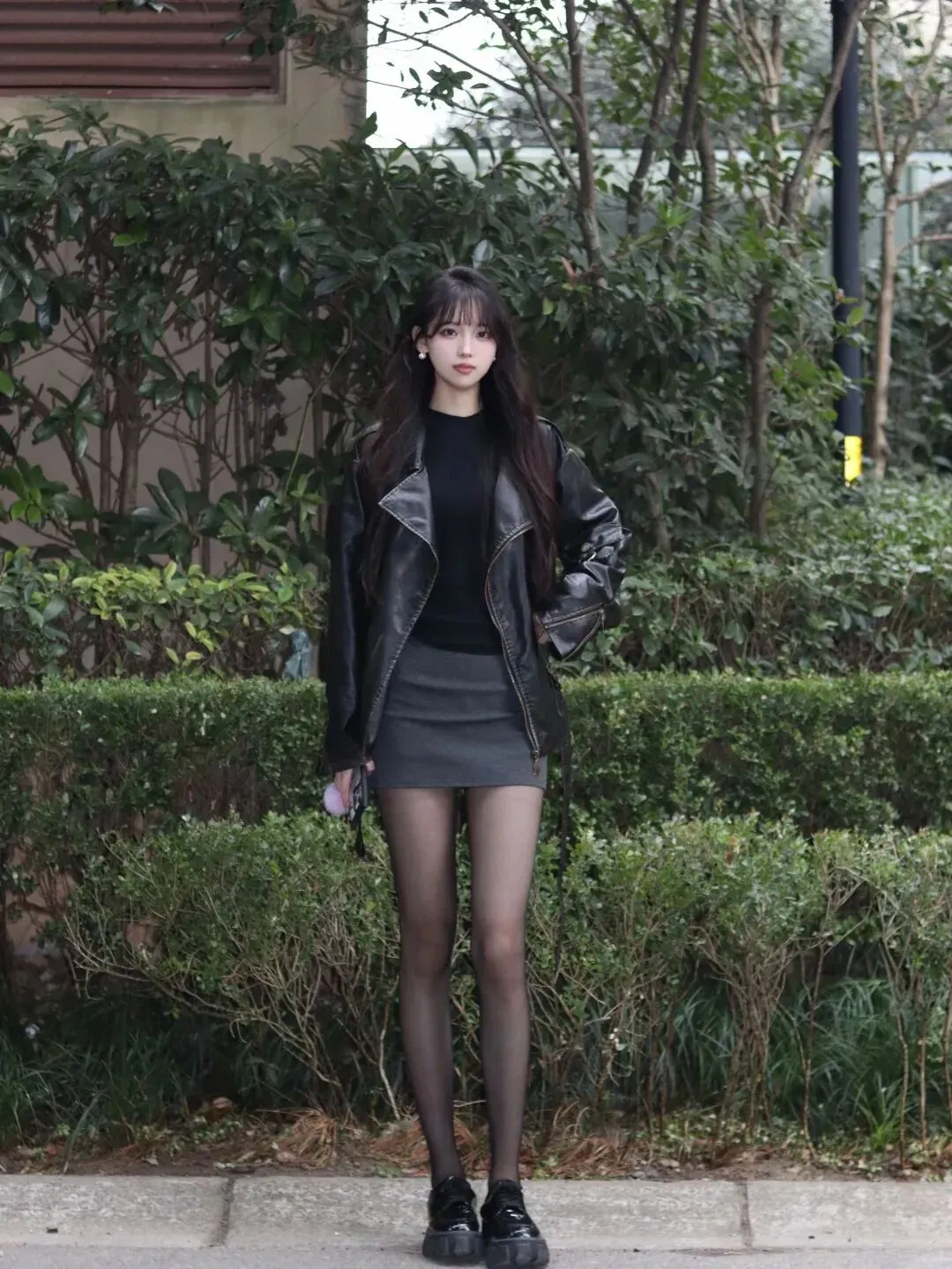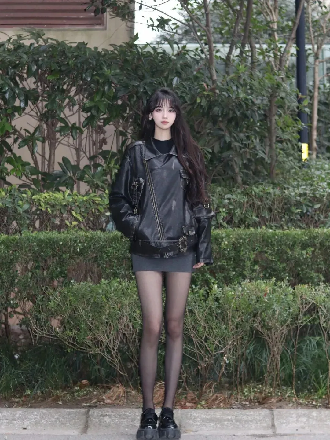 当前位置:首页>美女资讯>黑色皮衣+厚底皮鞋、灰色包臀短裙,气质模特,嘿丝大长腿,你心动了吗?