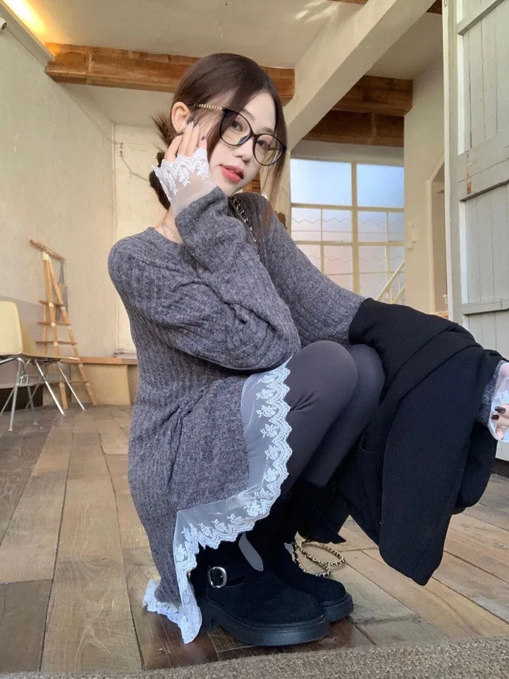 当前位置:首页>美女资讯>氛围感叠穿神器!韩系蕾丝长款打底衫29.9包邮!
