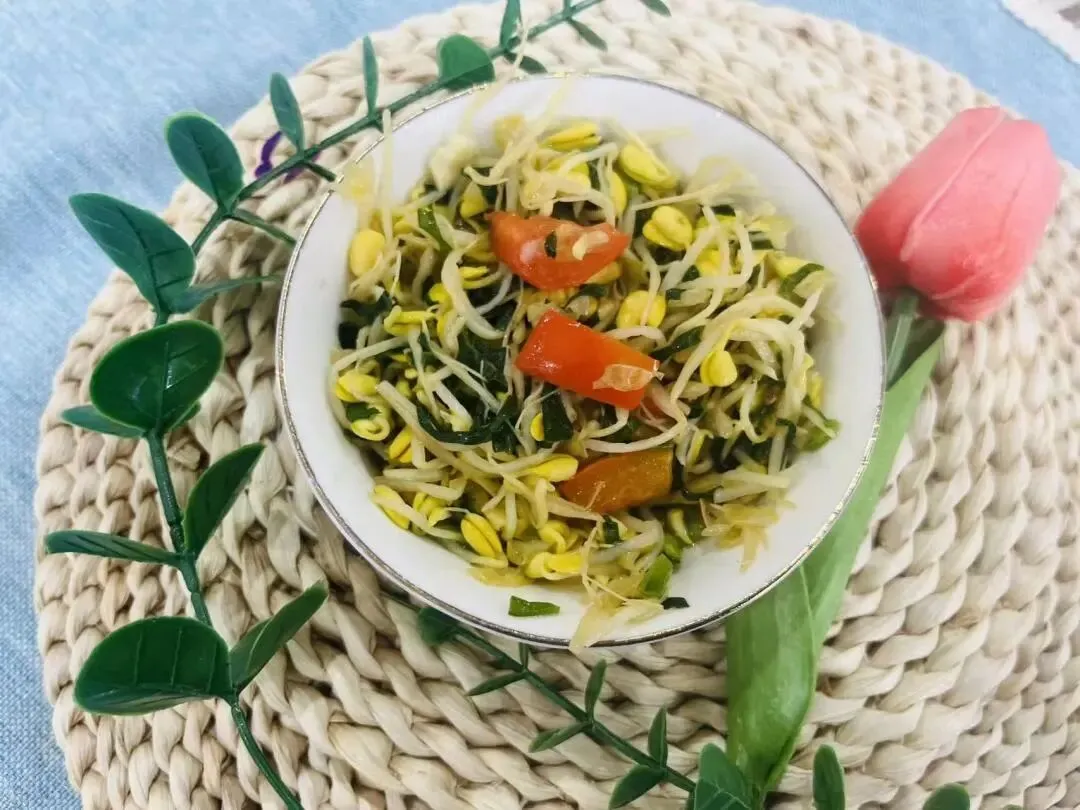 香芋蒸排骨、韭菜炒黄豆芽、丝瓜肉丸汤