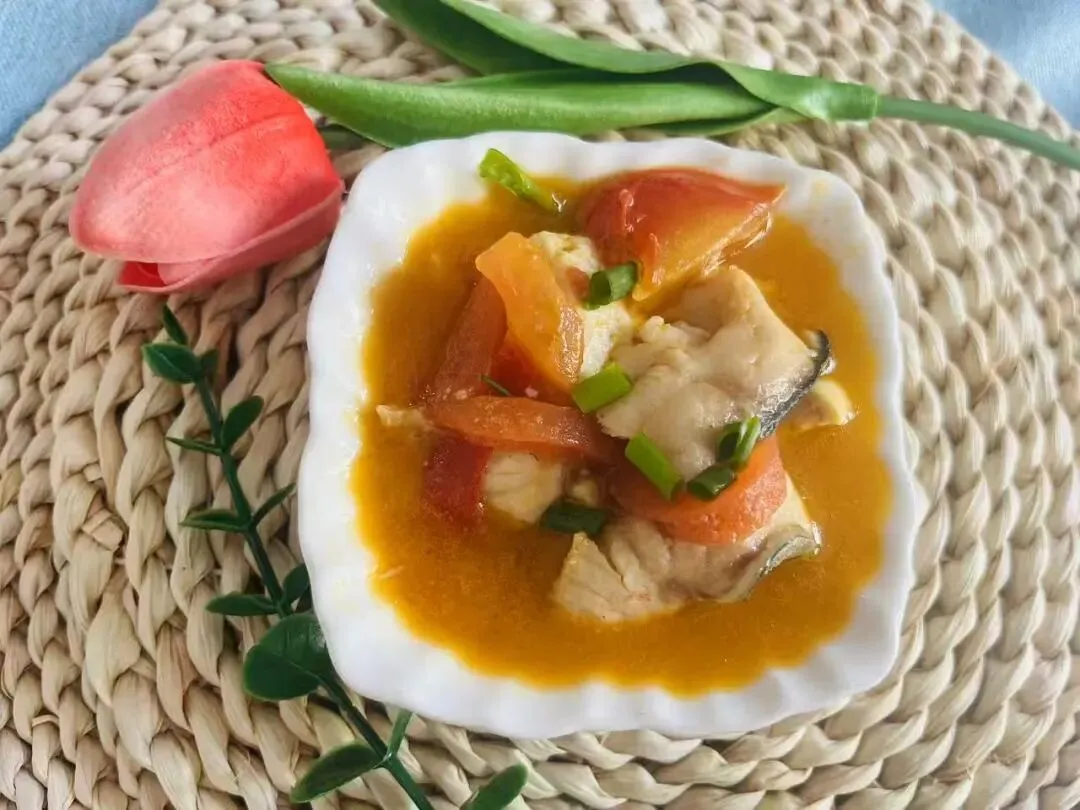 番茄鱼片、包菜炒肉、萝卜老鸭汤