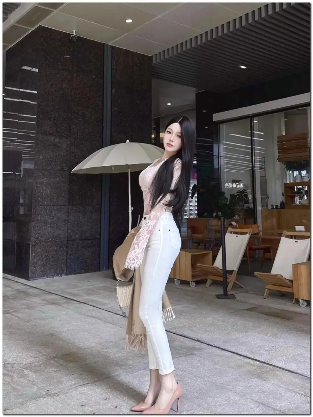 当前位置:首页>美女资讯>粉色蕾丝衫 + 修身白裤 + 裸色尖头鞋,真的太有温柔千金感了!
