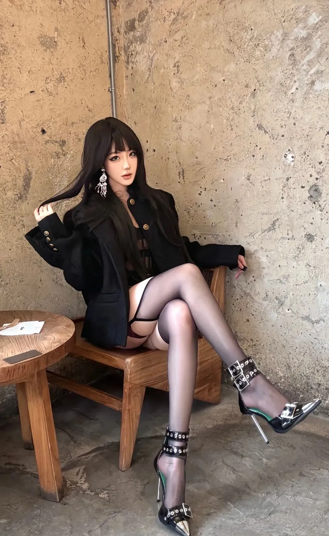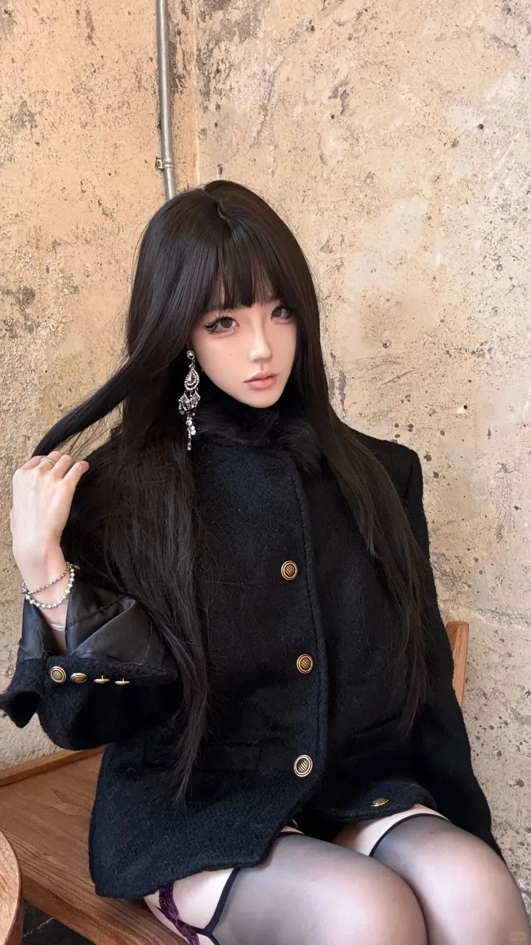当前位置:首页>美女资讯>金色纽扣外套+内穿束身衣+紫色蕾丝吊袜带,这身材绝了