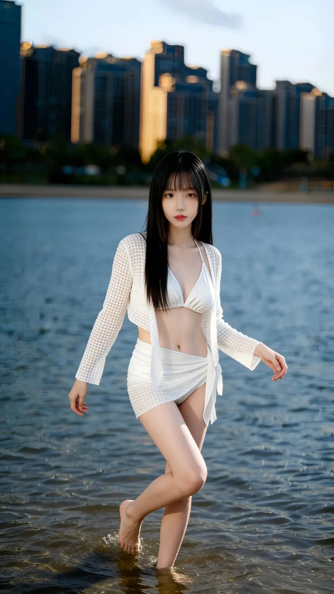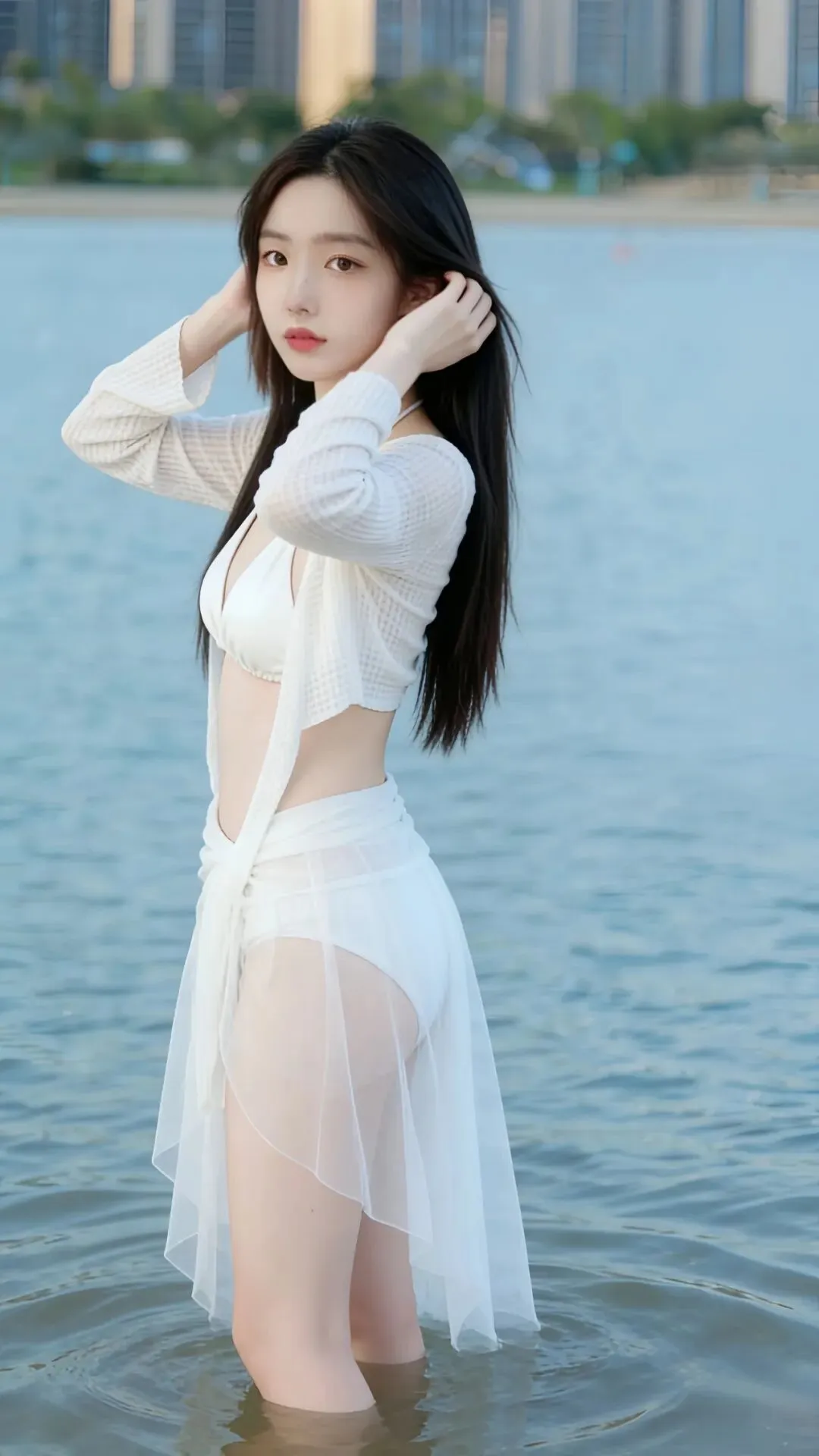 造型效果:整体造型会呈现出浪漫仙美又不失精致的海边度假风,既保留了穿搭的空灵气质,又通过配饰和妆容的调整增加了温柔甜美的氛围,适合在海边拍照、漫步或休闲放松。