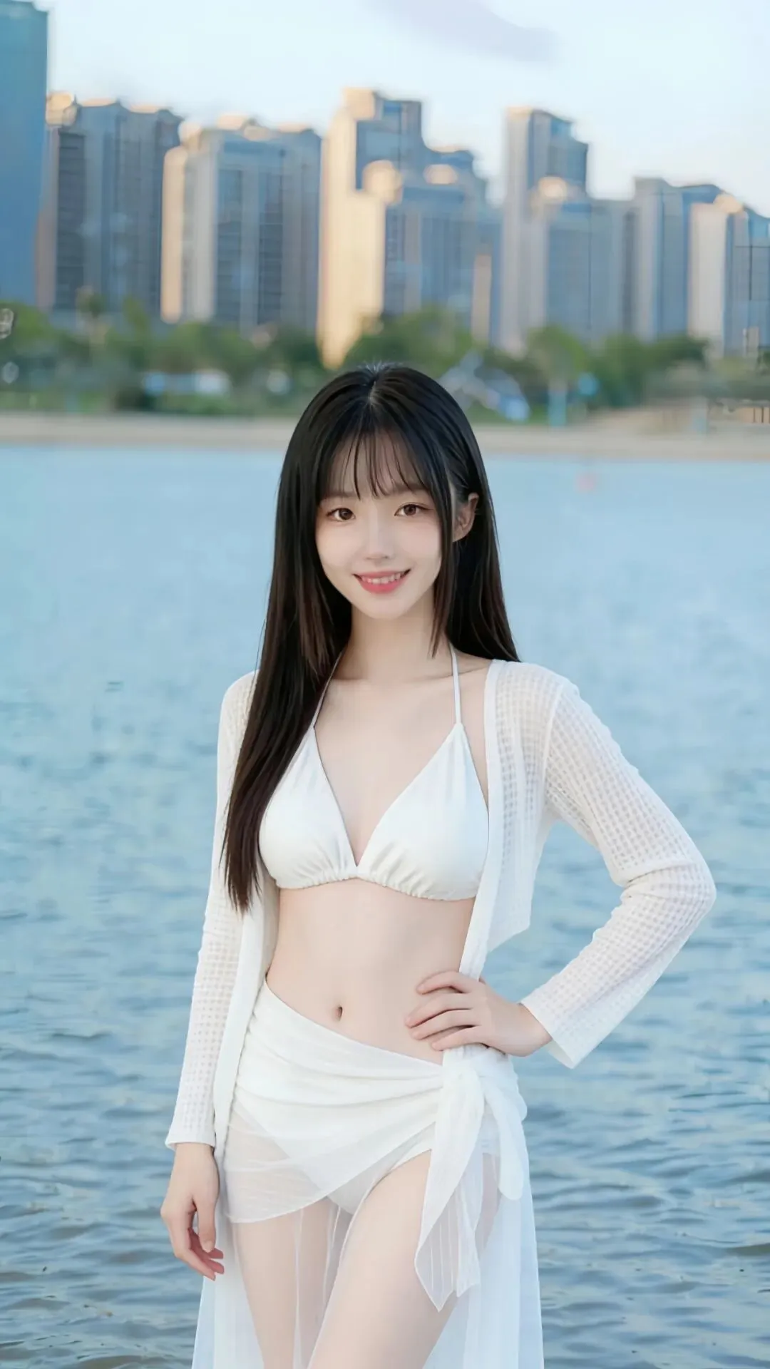 纯白比基尼勾勒曼妙身姿,丰腴美腿自带致命吸引力~