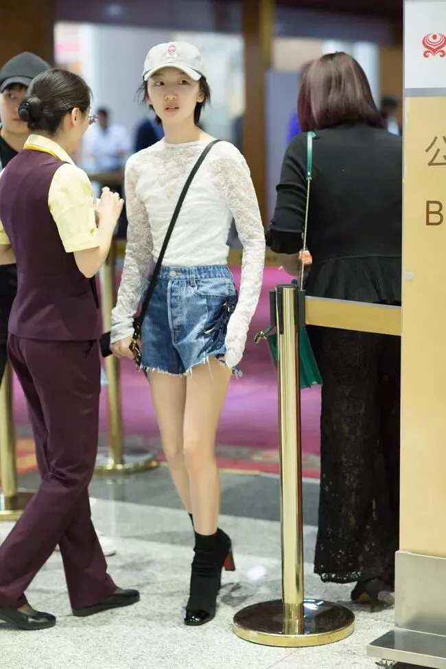 周冬雨头戴浅灰色鸭舌帽,身穿白色蕾丝上衣下搭牛仔短裤和黑色拼接短靴,柔美的造型兼具休闲舒适感。