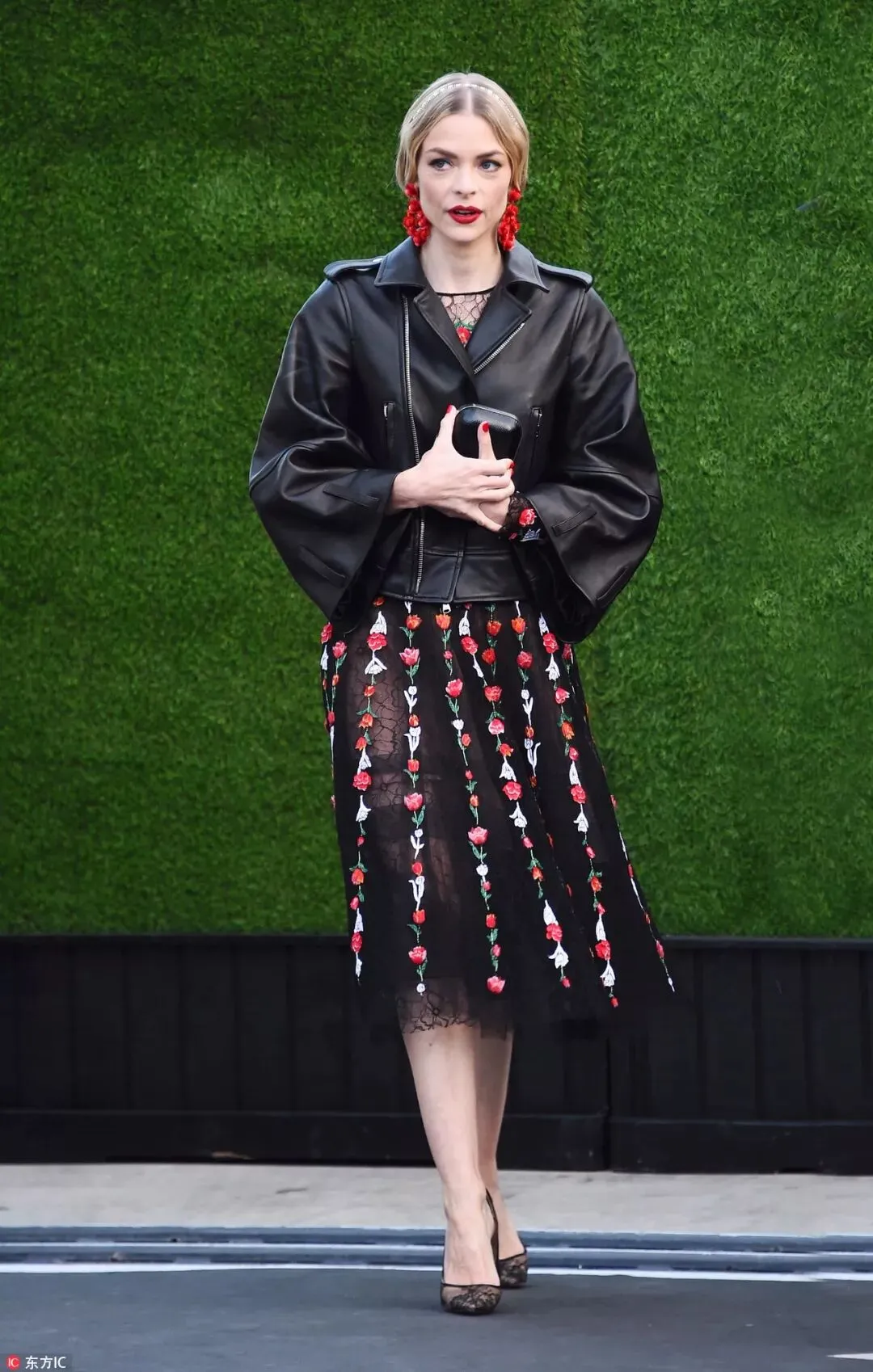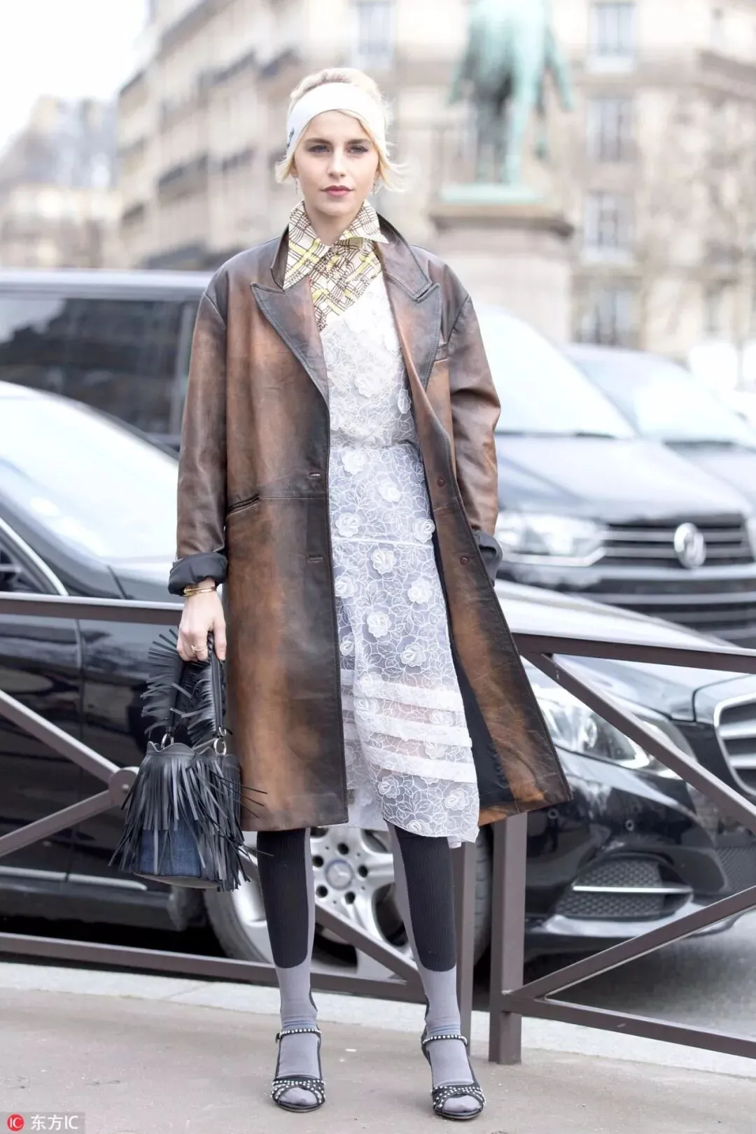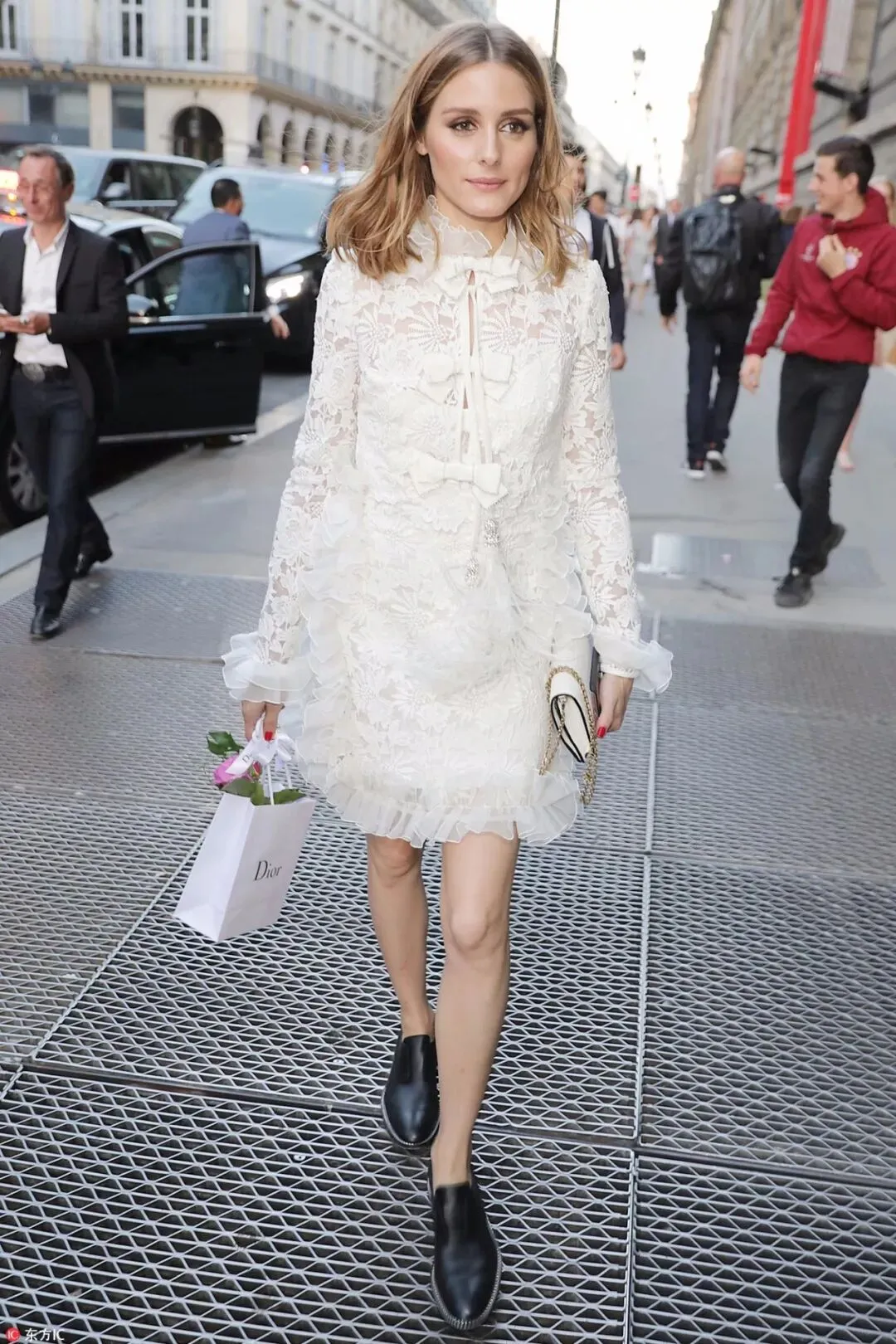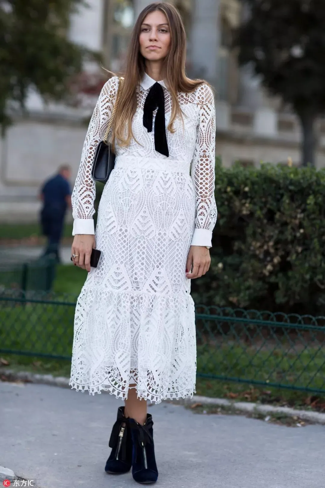 徐璐一身白色蕾丝套装现身时装周,若隐若现的蕾丝图案带来立体感,而黑色包袋与造型形成鲜明对比。