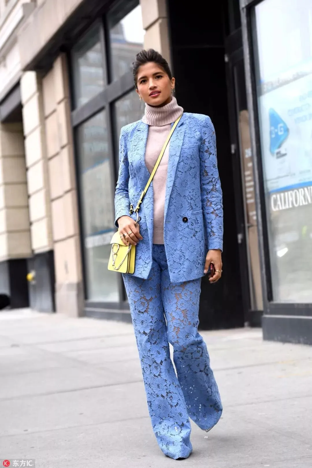 硬朗帅气的西装内搭一件蕾丝上衣,刚柔并济的造型也适合作为通勤装来穿,既不会太随意又不会太出挑。
