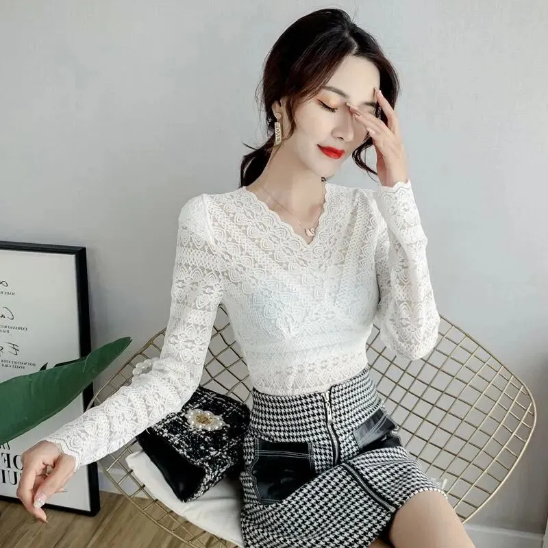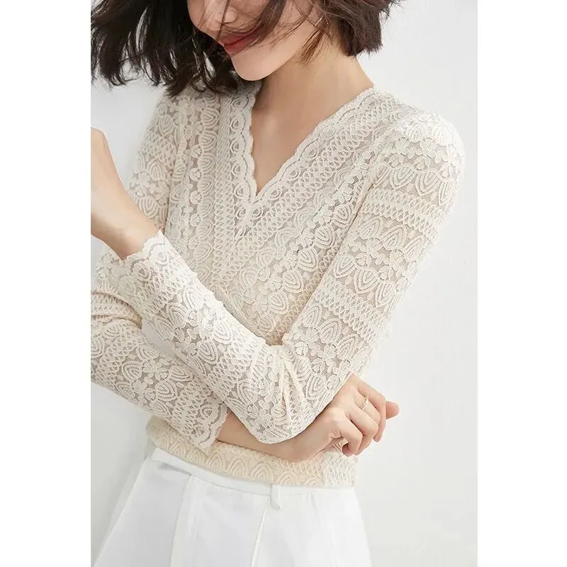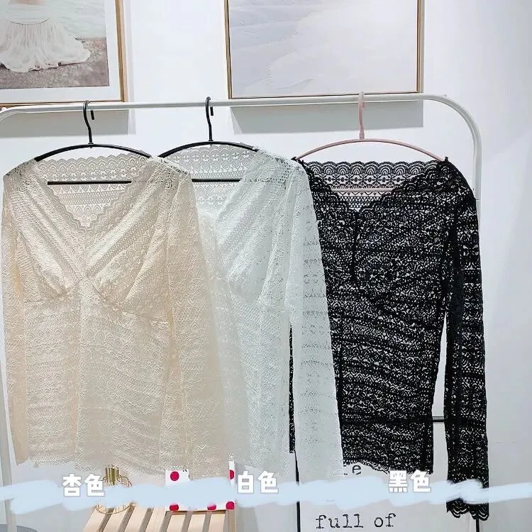 【品名】V领蕾丝打底衫