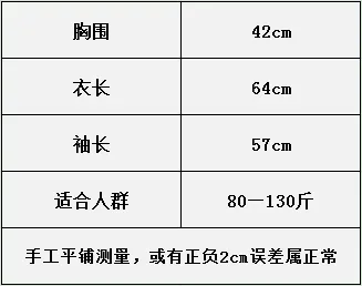 【尺寸】胸围约41cm,衣长约64cm,袖长约57cm