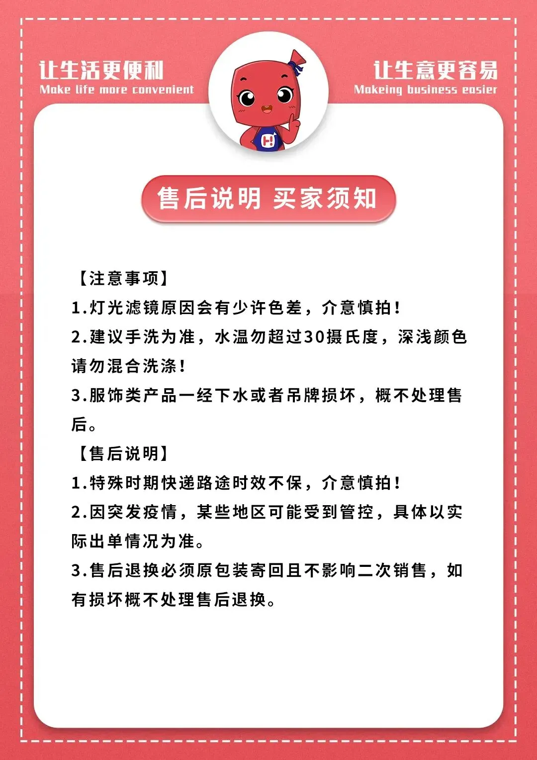 注意事项及售后说明