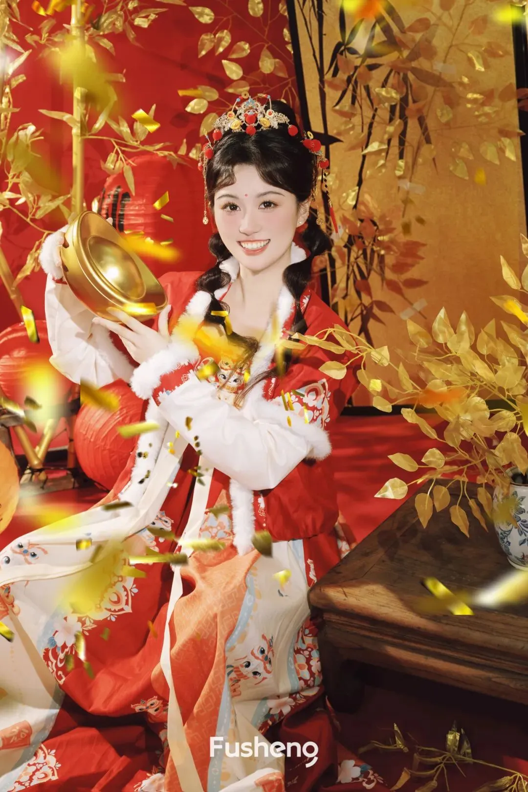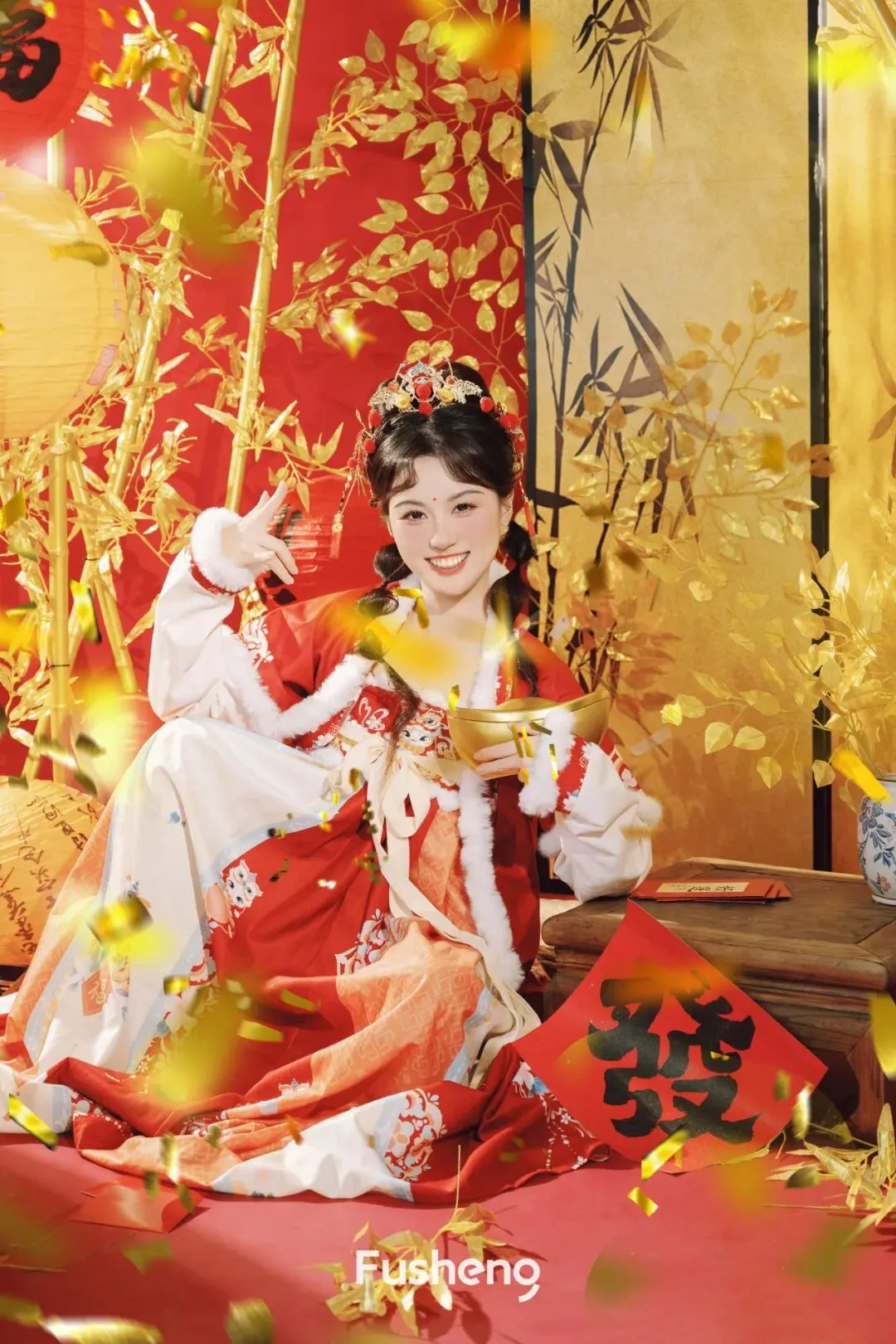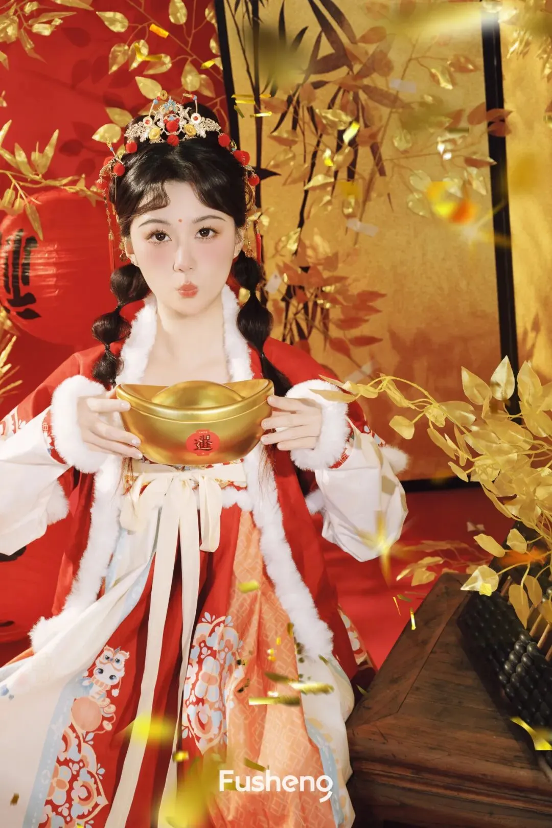 一脚踏进浮生的新春布景,瞬间懂了什么叫「浮笙一梦,新年开挂」~窗外是冬日的小冷意,镜头里却是马年的红金热热闹闹,红绸搭在肩头,小金饰晃呀晃,这一刻我就是新春里最甜的崽崽✨