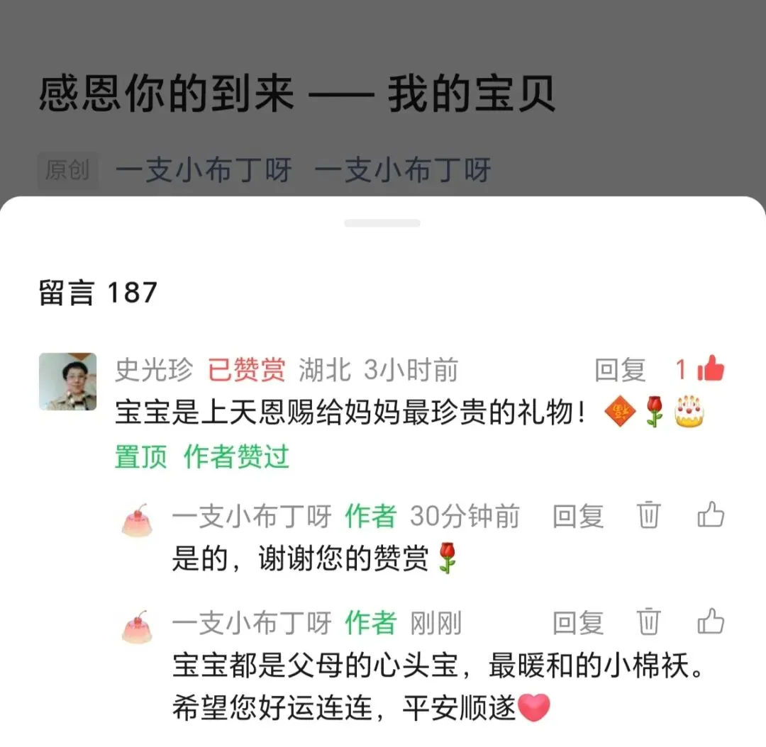 一觉睡到10点,腰不酸,头不晕了。一醒来摸手机,打开公众号回复友友们,映入眼帘的是有友友赞赏了。赞赏的是我昨天发布的感恩你的到来 —— 我的宝贝,宝宝真是妈妈的幸运女神。