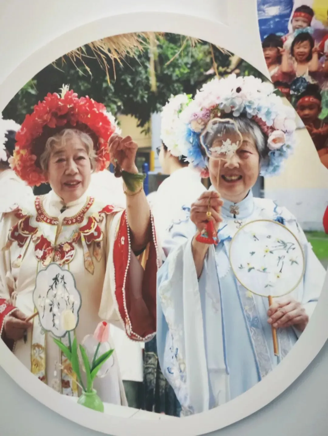 当我询问能不能采访她时,她立刻亲切地挽着我的手说:“当然可以,来,我带你去看看我簪花的照片。”她的手温暖有力,脚步稳健得让人忘记了她已经91岁。