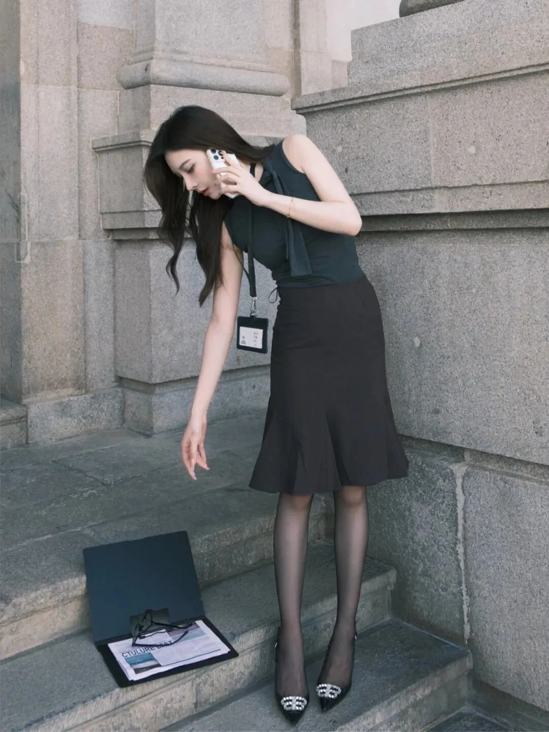 当前位置:首页>美女资讯>气质模特,时尚穿搭,紧身衣、包臀裙,黑丝大长腿