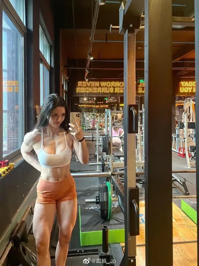 肉眼可见的低体脂,犹如白巧一样的紧实肌肉,配上颇高的颜值,这位姐能火不是没原因的!