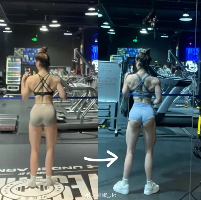 她会经常晒出自己的健身对比照,记录身材一步一步的变化。