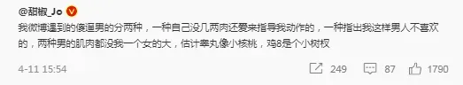 你以为在这样的身材应该会吸引很多LSP,确实存在LSP,但我真的有认真看评论,发现里面大多都是妹子。