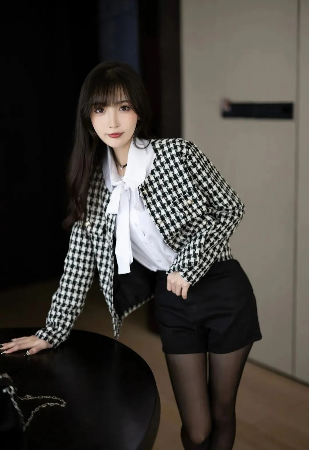 当前位置:首页>美女资讯>美女模特林星阑,格子衫、包臀裙,纤腰黑丝大长腿