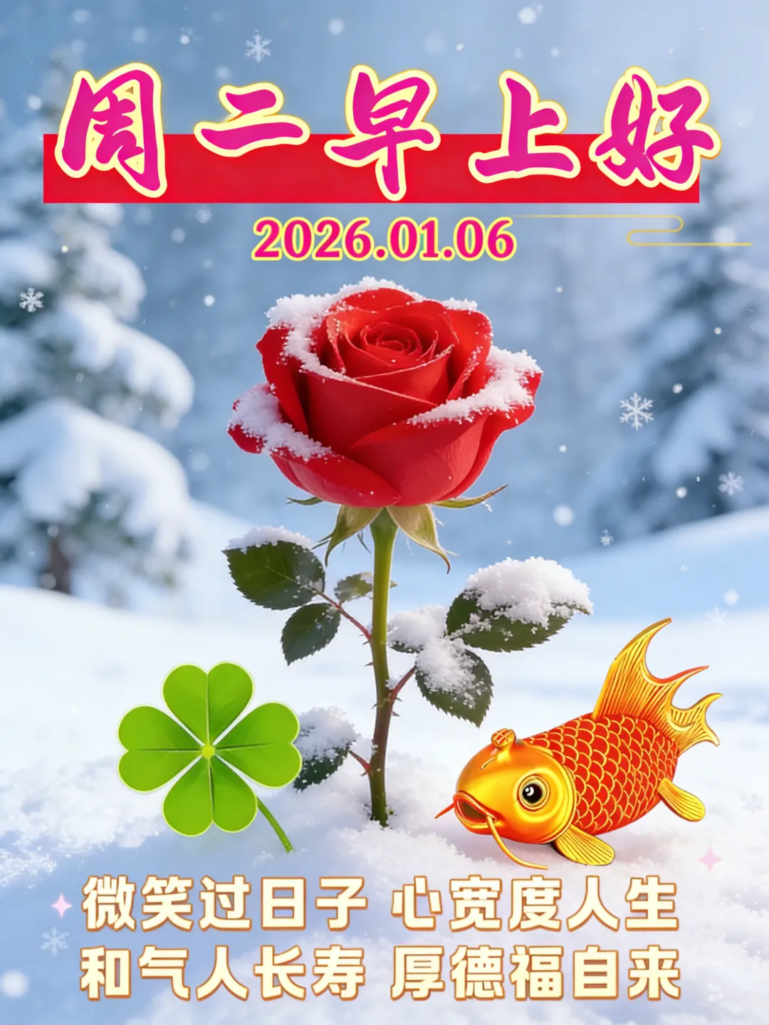 2026年1月6日周二早上好早安图片带日期,冬日暖心祝福问候语大全