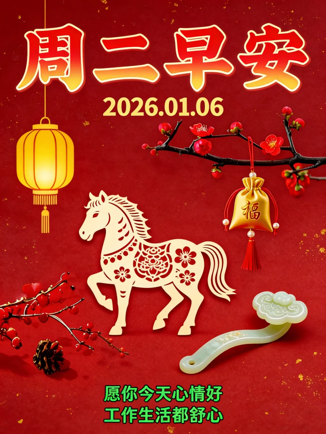 周二早安!这是充满希望与机遇的一天,让我们一起迎接新挑战,追逐梦想的脚步。愿你活力满满,心情愉悦,工作顺利,用努力创造属于自己的辉煌,拥有美好的一天!
