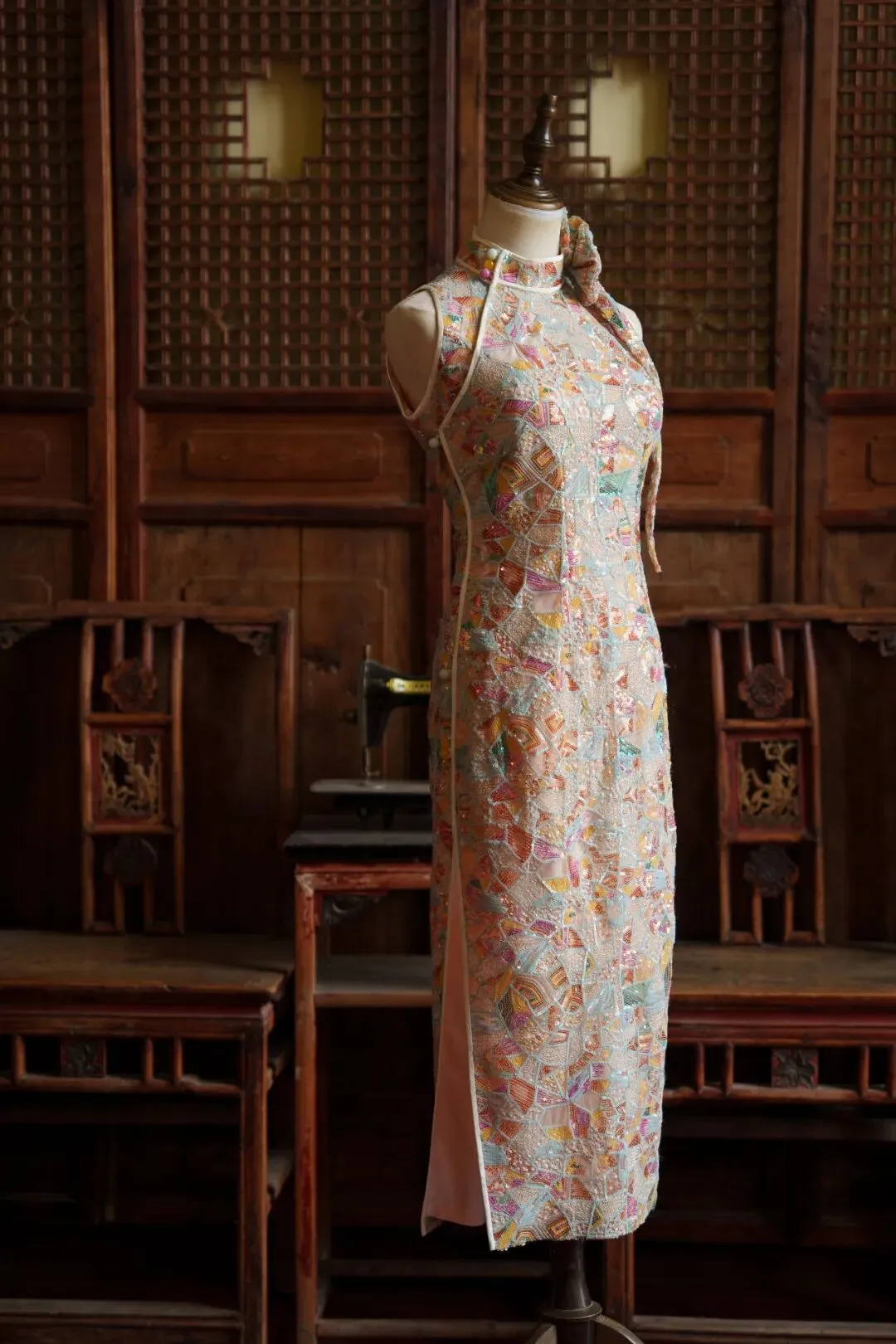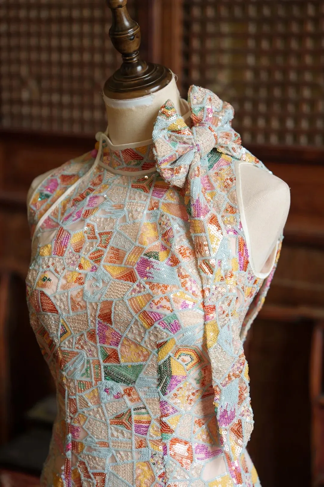 当前位置:首页>美女资讯>蕾丝 |粉马赛克亮片挖肩旗袍