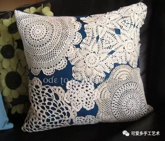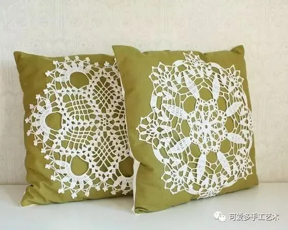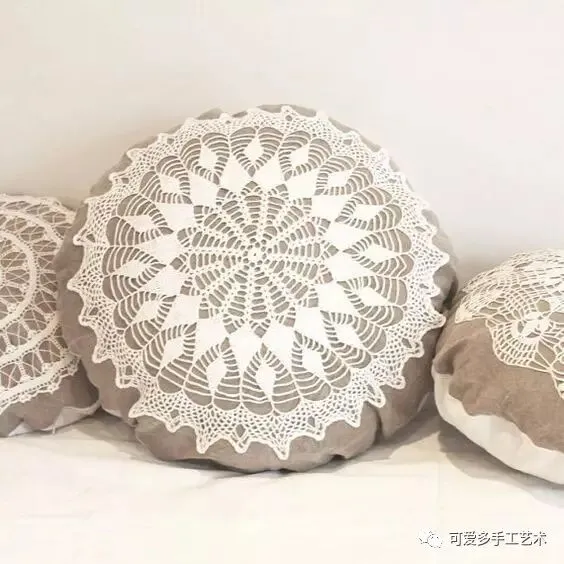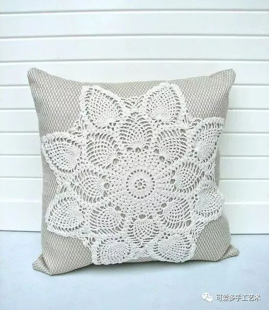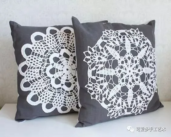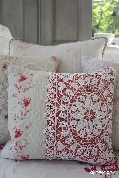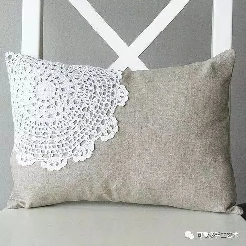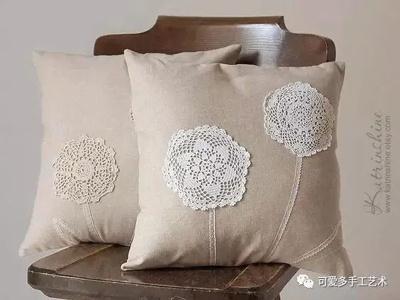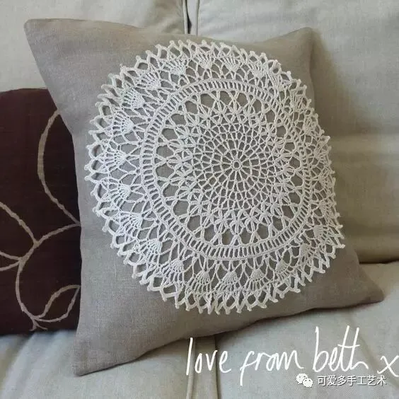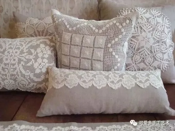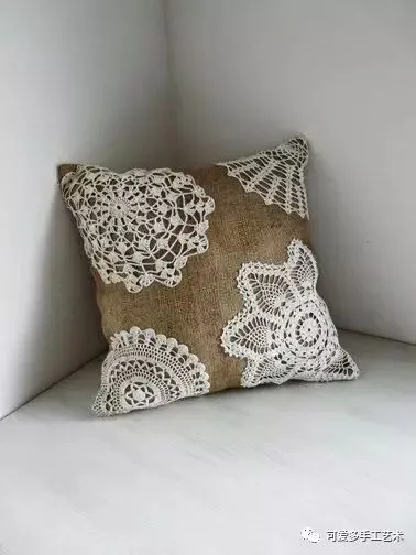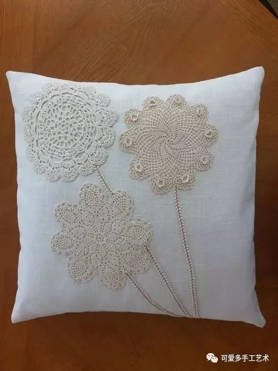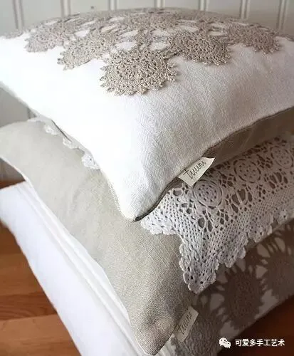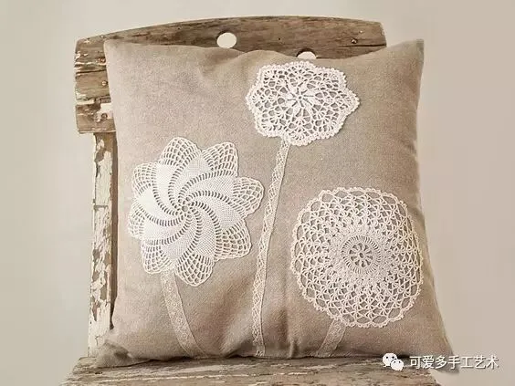 钩好的几片蕾丝,缝到布艺抱枕上,身价立马倍升,再也不怕家里的抱枕配不上家具了。