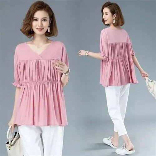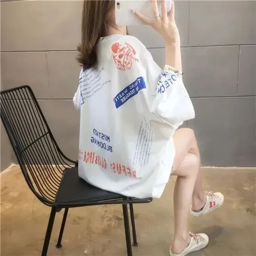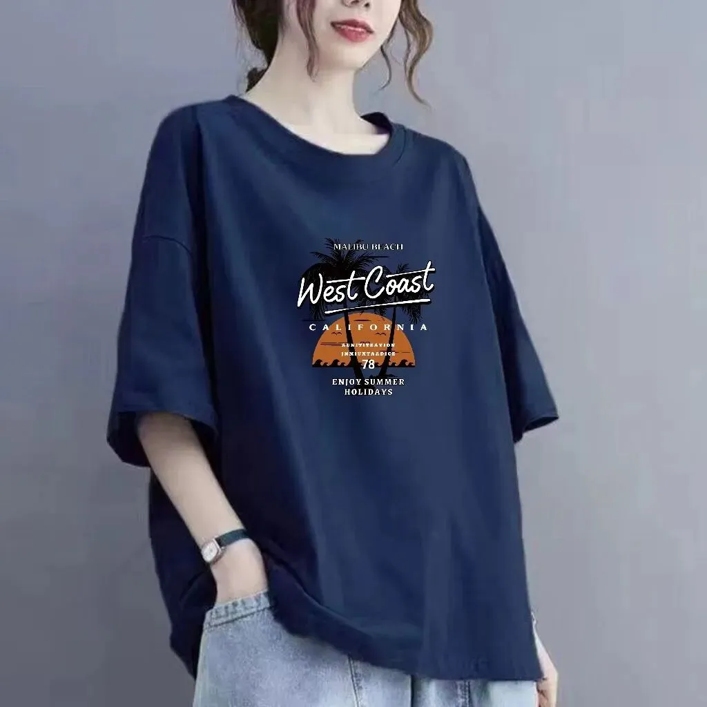 女装短袖韩版宽松大码休闲圆领上衣夏季显瘦新款