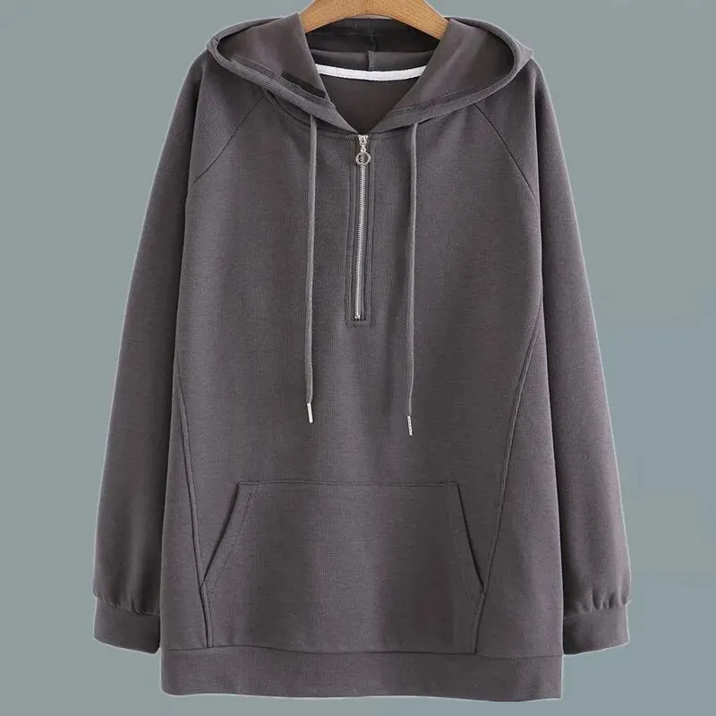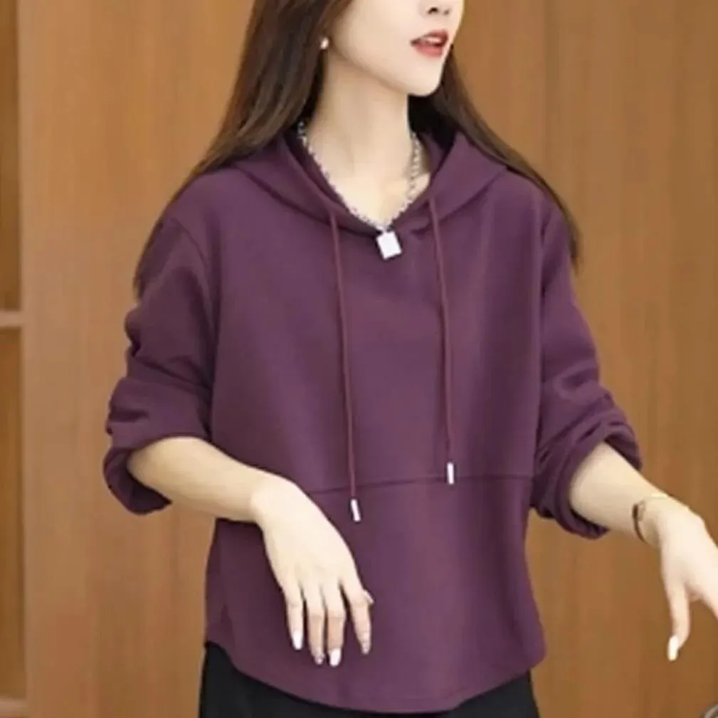 慵懒感拿捏了~休闲简约连帽卫衣女,大码宽松遮肉,小个子也适配
