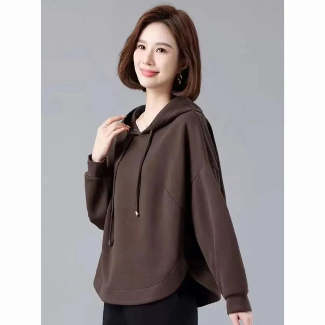 连帽卫衣女2025春季新款中年妈妈宽松短款慵懒风薄外套叠穿打底上