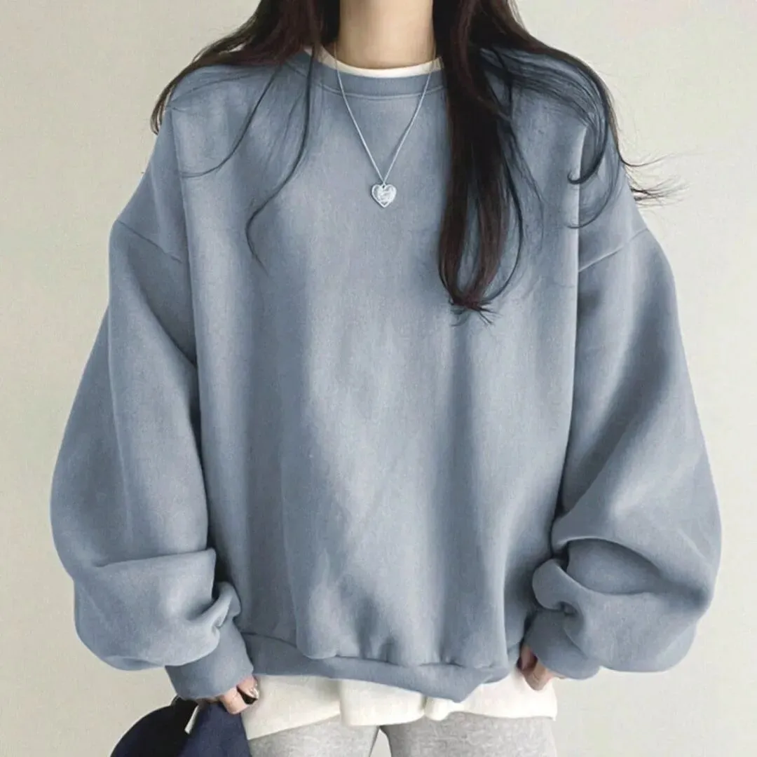 2025秋冬新款上衣女体恤大码女装百搭圆领长袖衫宽松文艺休闲卫衣