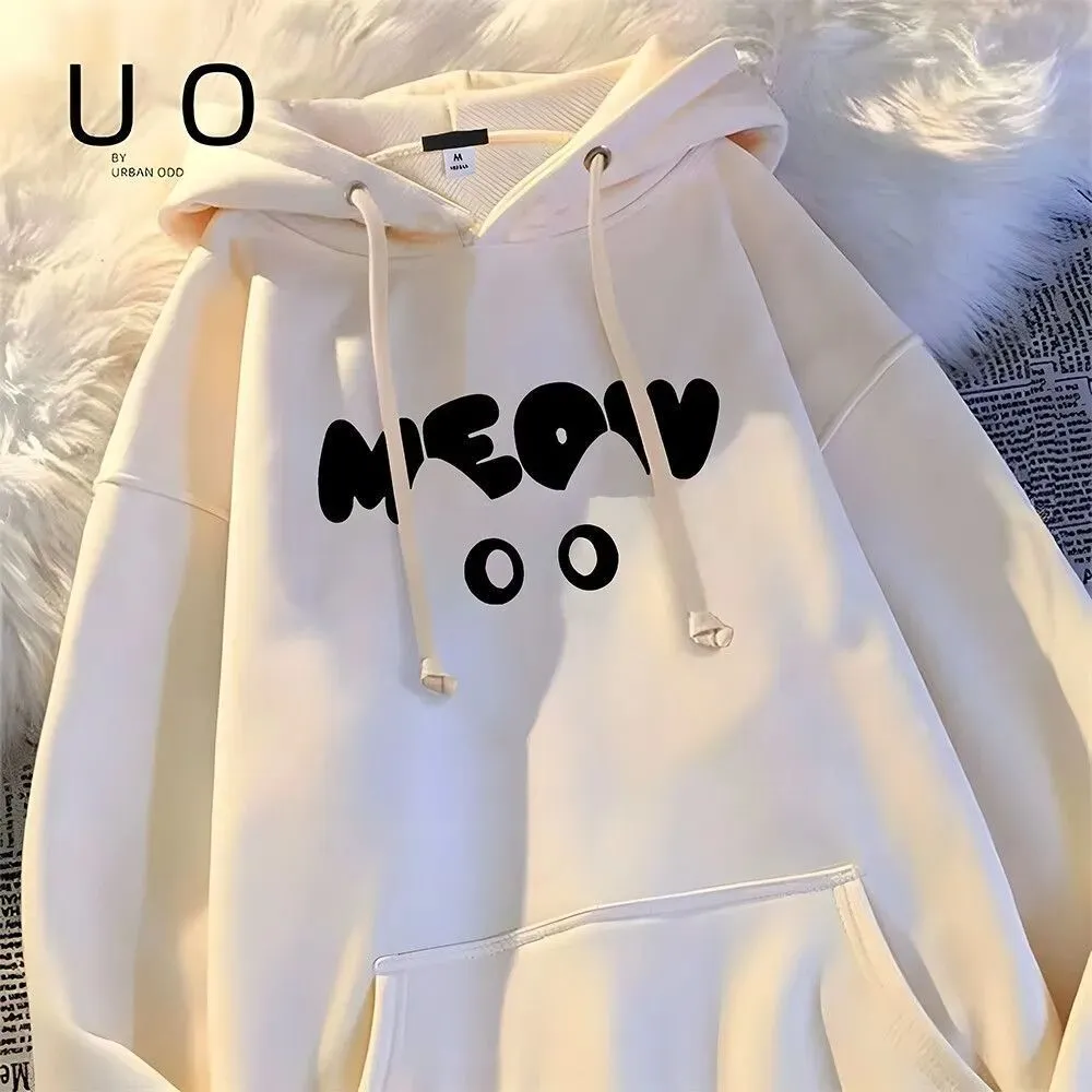 100%纯棉个性街头重磅连帽卫衣女秋冬季加绒保暖宽松休闲套头上衣