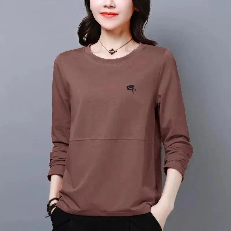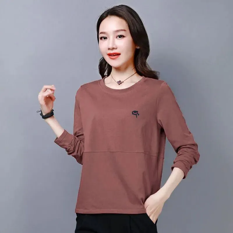 t恤女长袖宽松大码女装春秋装休闲妈妈装内搭阔太太打底衫女韩版