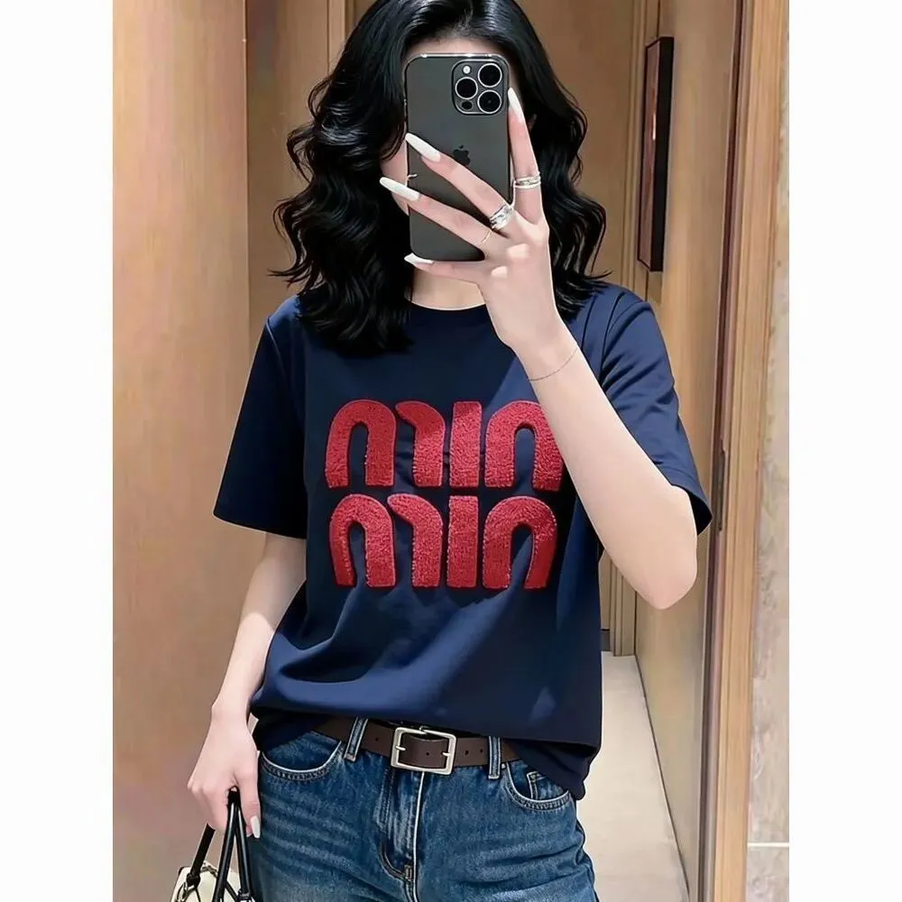 大码胖mm韩版刺绣字母圆领短袖T恤打底衫女春夏季宽松显瘦上衣女【7天内发货】