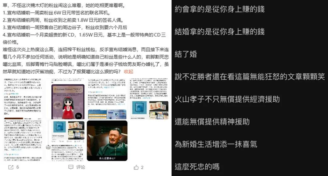 2.宣布结婚前一周,预售自己的周边谷子,粉丝收到要六个月后