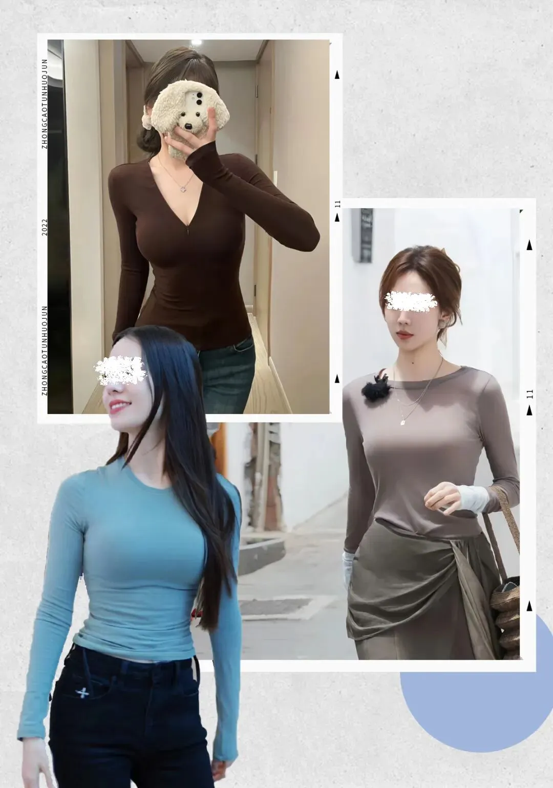 上半身整体显得了很多,穿修身打底衫时,不再是往外堆的状态,而是有了和的S型曲线