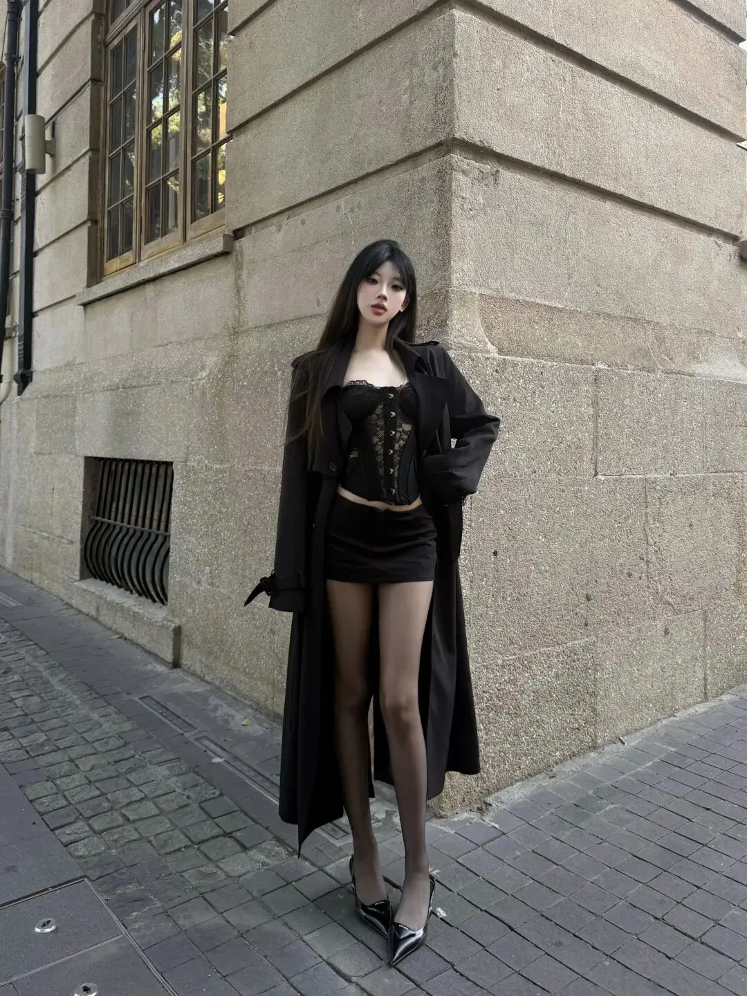 当前位置:首页>美女资讯>“黑色长风衣+蕾丝束身上衣”,街头这一套又酷又高级,走路都带风~
