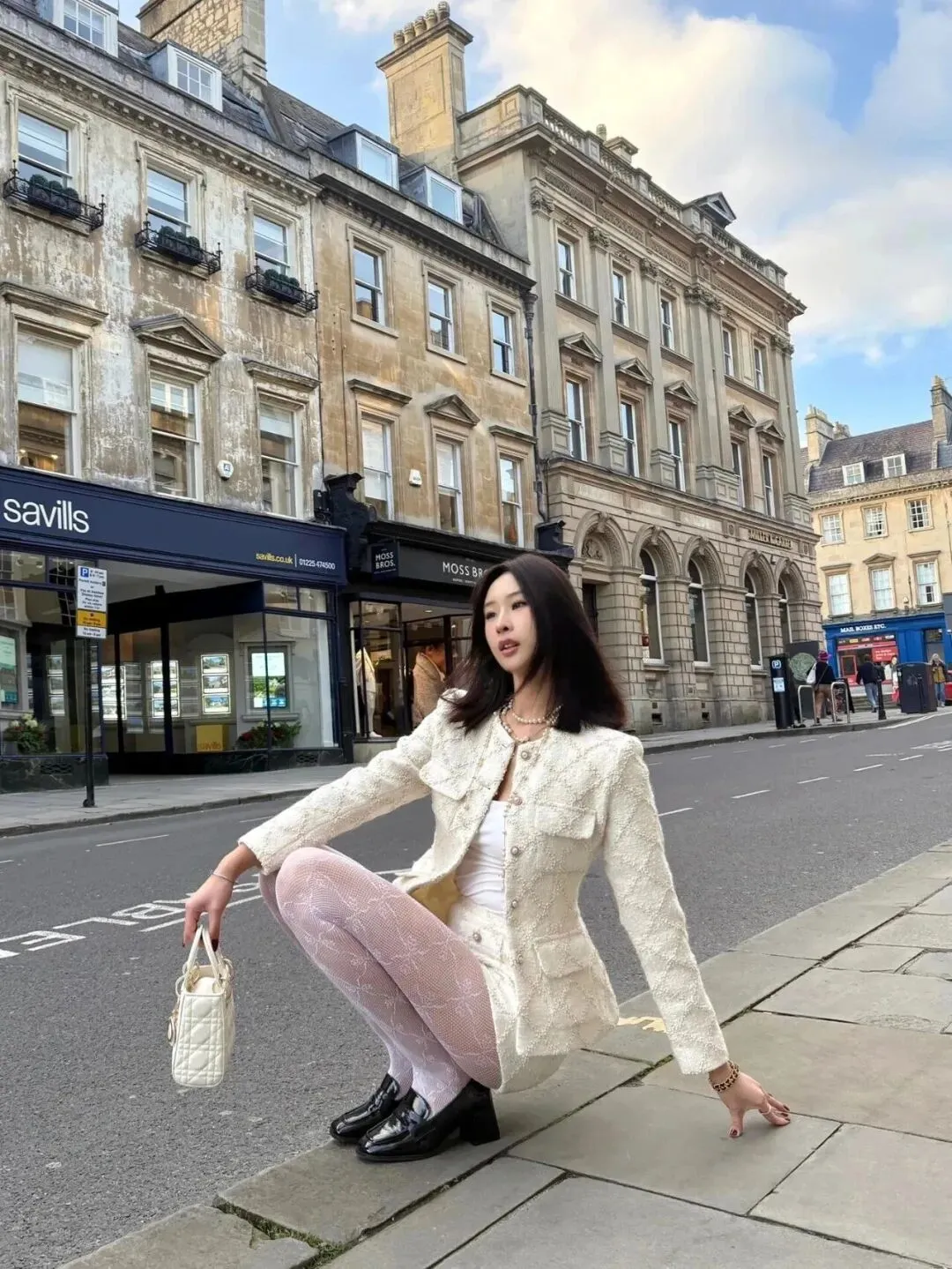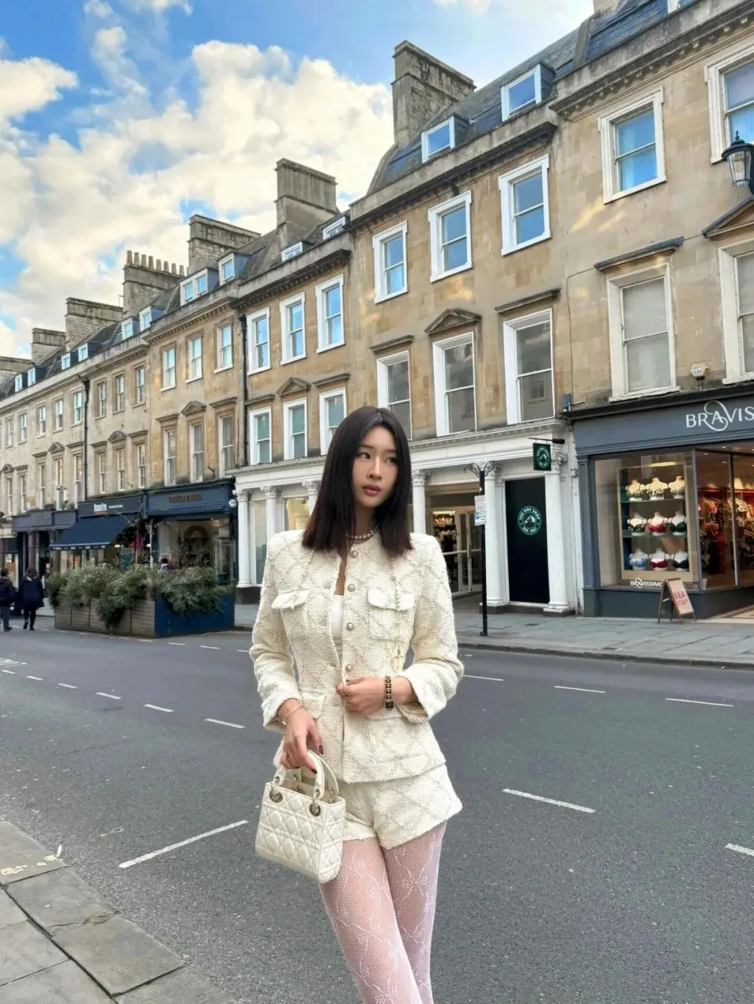 当前位置:首页>美女资讯>颜值穿搭,米白色小香风+短裤+蕾丝花纹袜+小皮鞋,精致优雅,时尚有魅力
