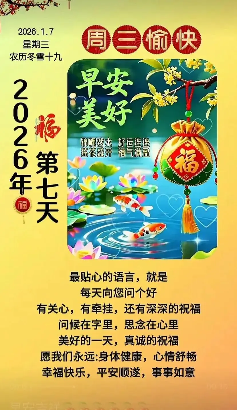 当前位置:首页>美女资讯>1月7日 周三早安祝福语图片最新的 周三最美的早安祝福语 周三早安祝福语图片大全精选