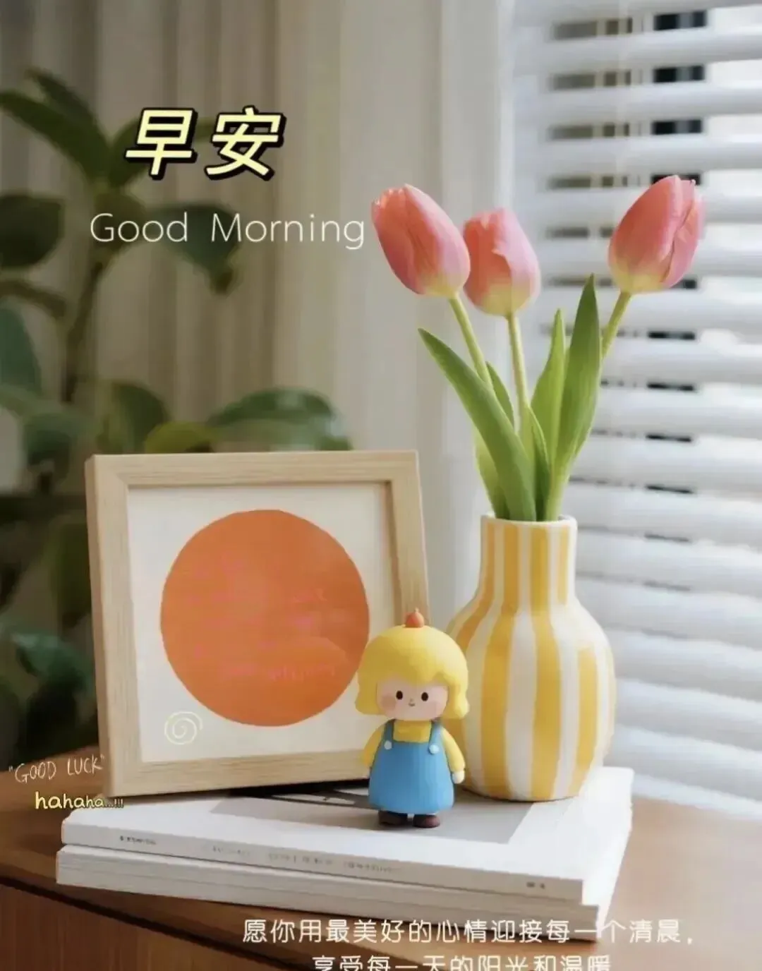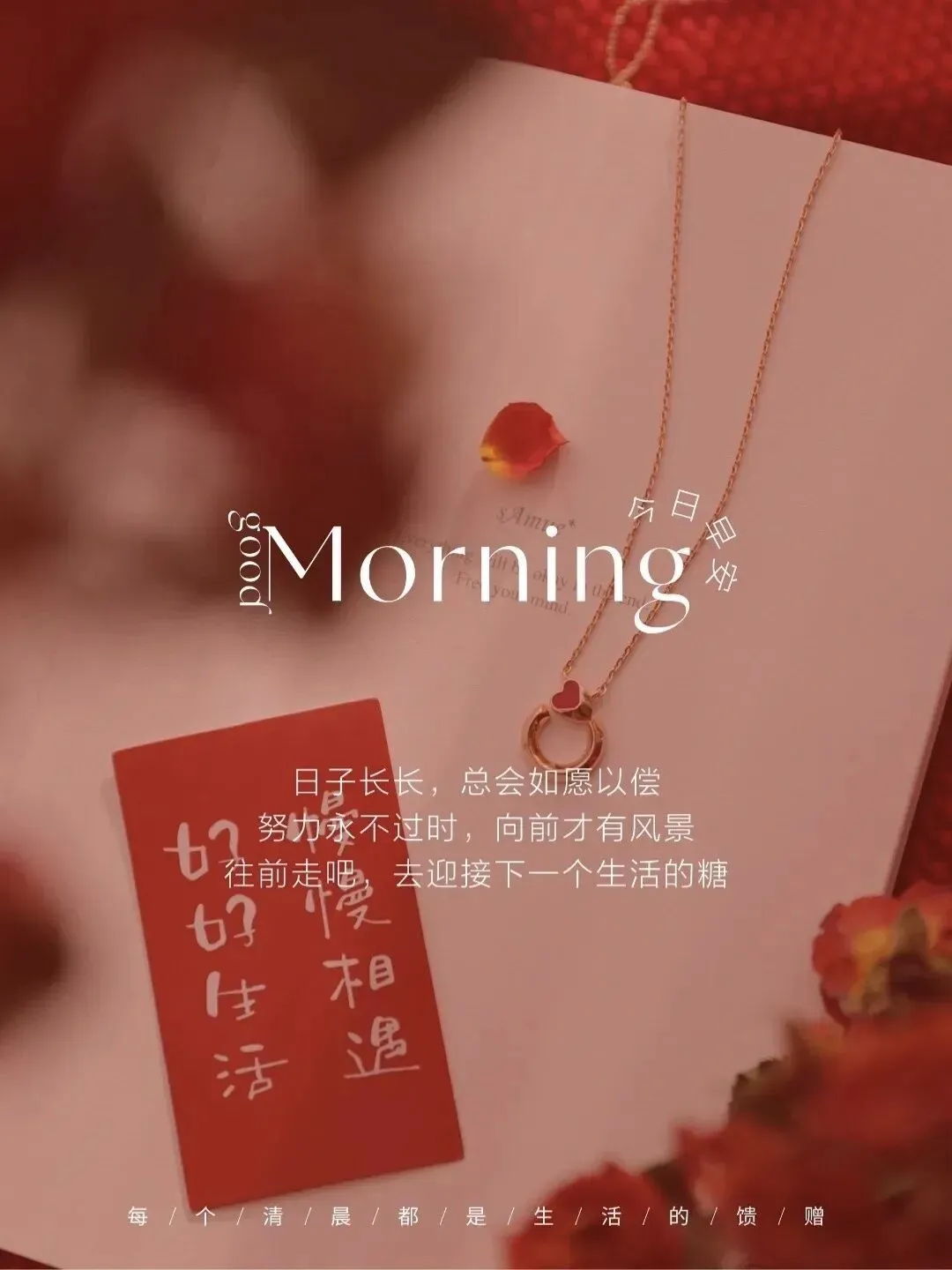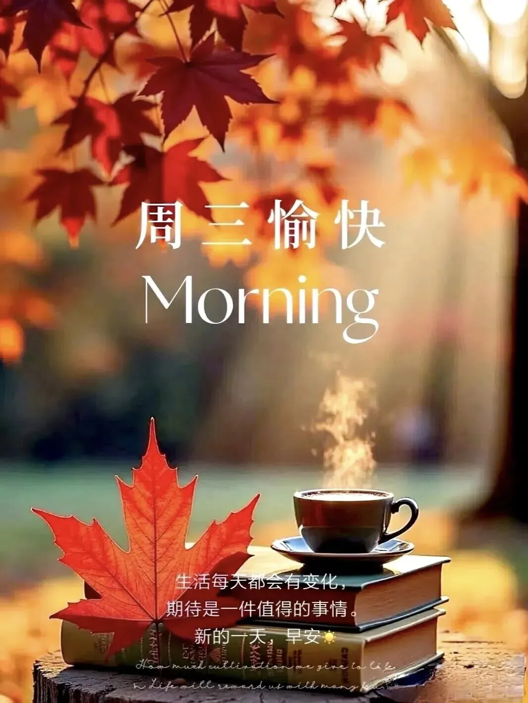2. 早上好呀💖!周三是一周的小马达⛽️,加满元气继续冲,愿你把琐碎的烦恼都抛开🗑️,把重要的事情都办妥✅,钱包悄悄鼓起来💰,笑容天天挂起来😄,日子越过越精彩。