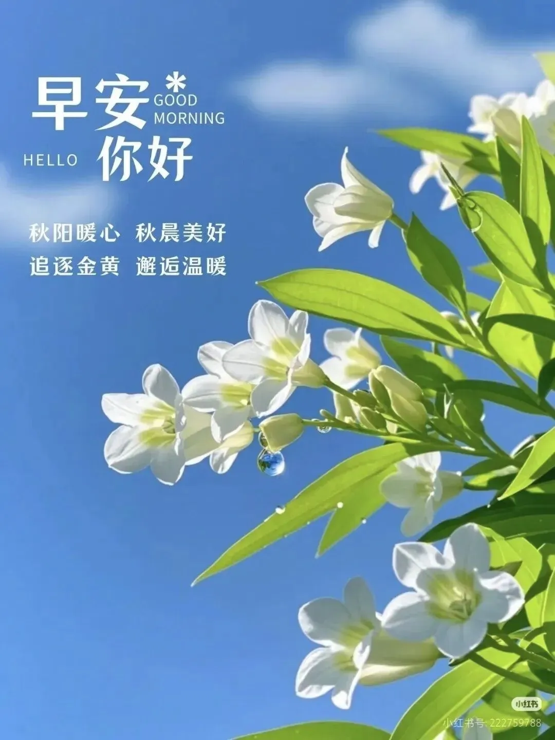 1. 周三早安🌞!清晨的露珠晶莹剔透💧,像洒落在人间的小星光✨,愿你今天的心情像蜜糖一样甜🍬,工作顺风顺水不卡顿💼,遇见的都是暖心的小幸运🥰,快乐久久不散场🎶。
