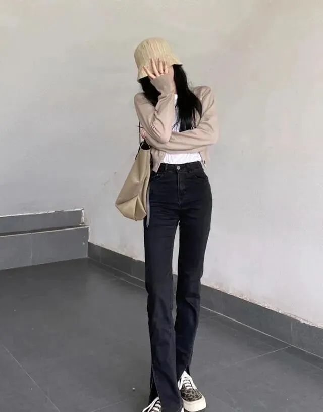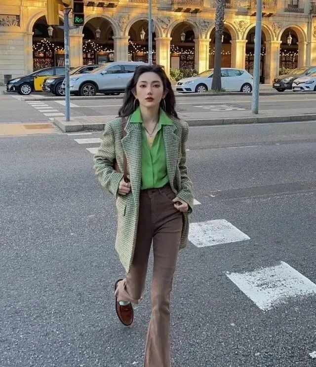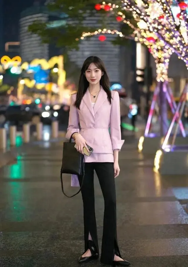 甜美型的女生 , 穿马蹄裤、西装裤更搭 , 整体风格协调。