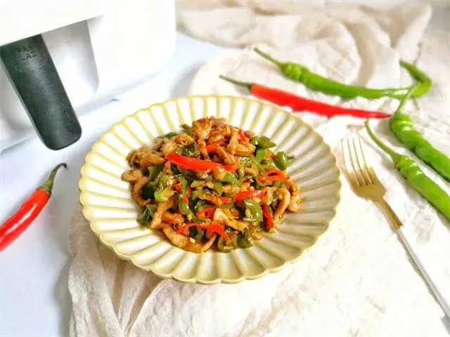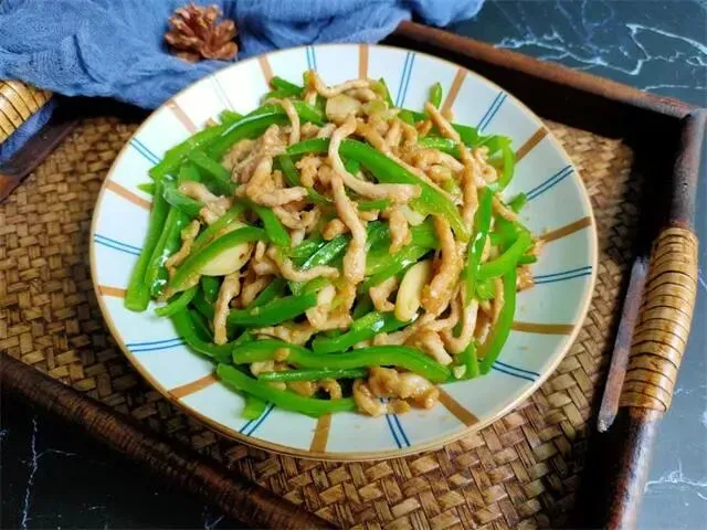 辣椒炒肉丝。需要准备的食材:猪肉、青椒、姜、蒜、淀粉、蛋清。抽、蚝油、盐、油、胡椒粉、料酒。