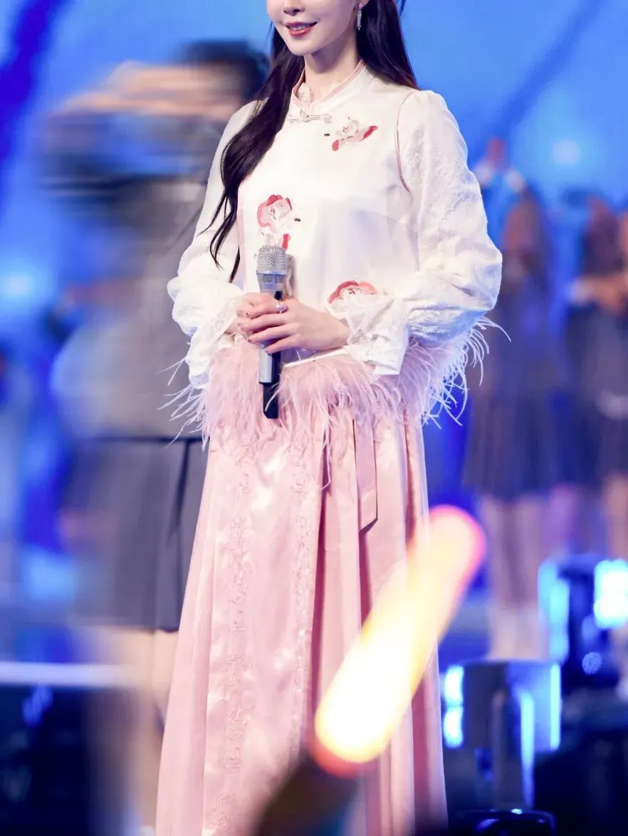 柔雾粉的马面裙搭配白玉色上衣和宋轶的温婉长相太配了,李白来了都得写首诗。