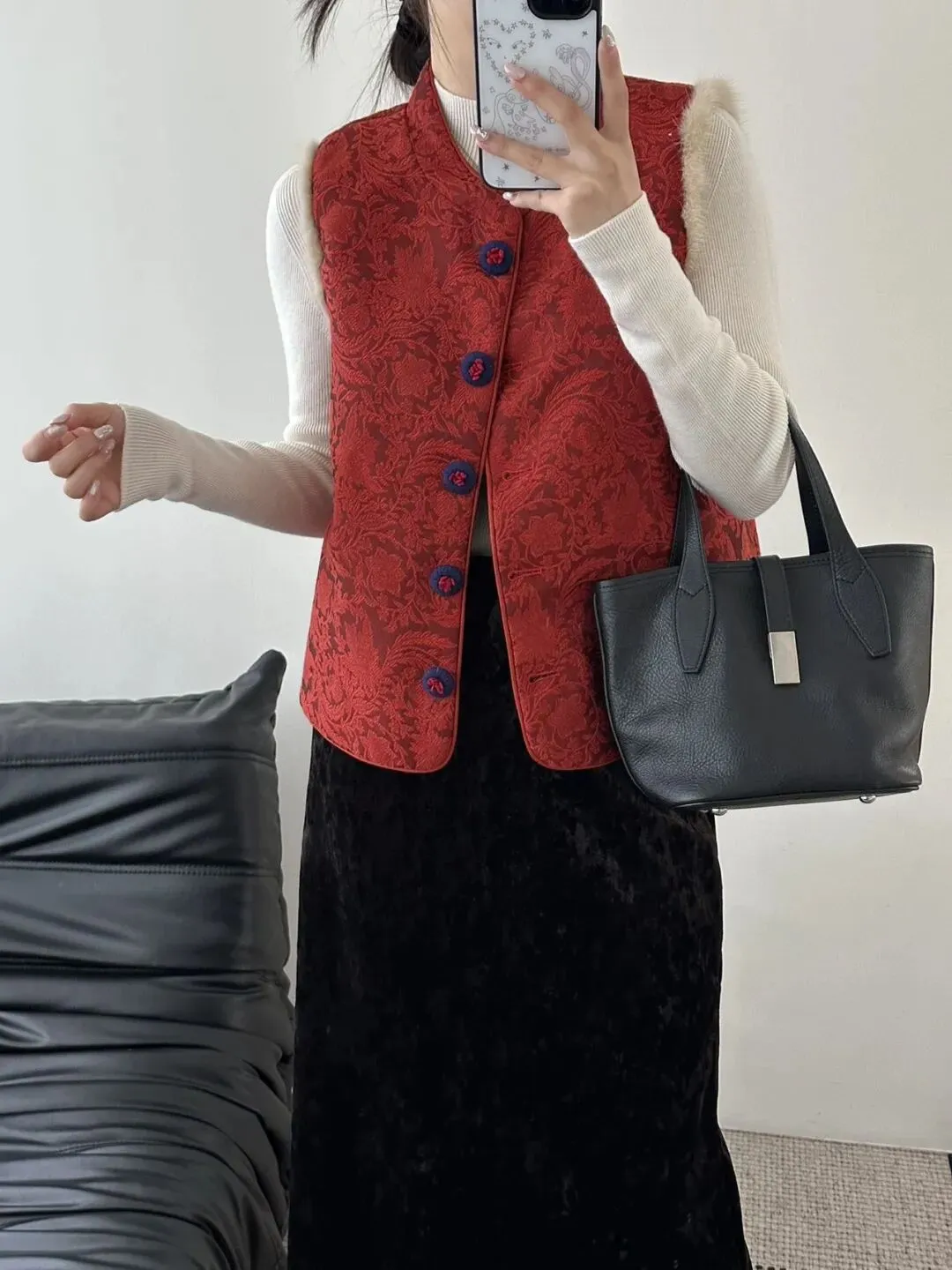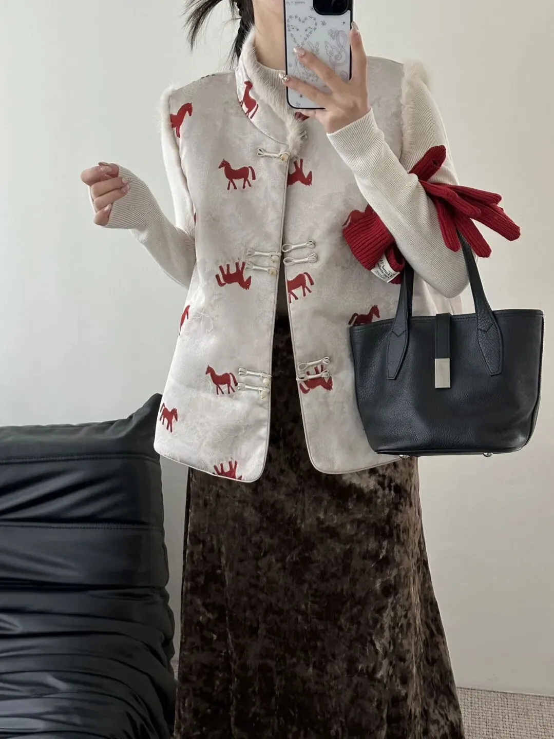 如果不知道咋搭配,建议从中式马甲开衫,随便搭配打底衫和有光泽感的半裙,就能拿拿捏氛围感。