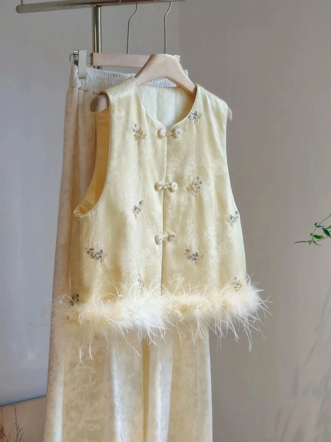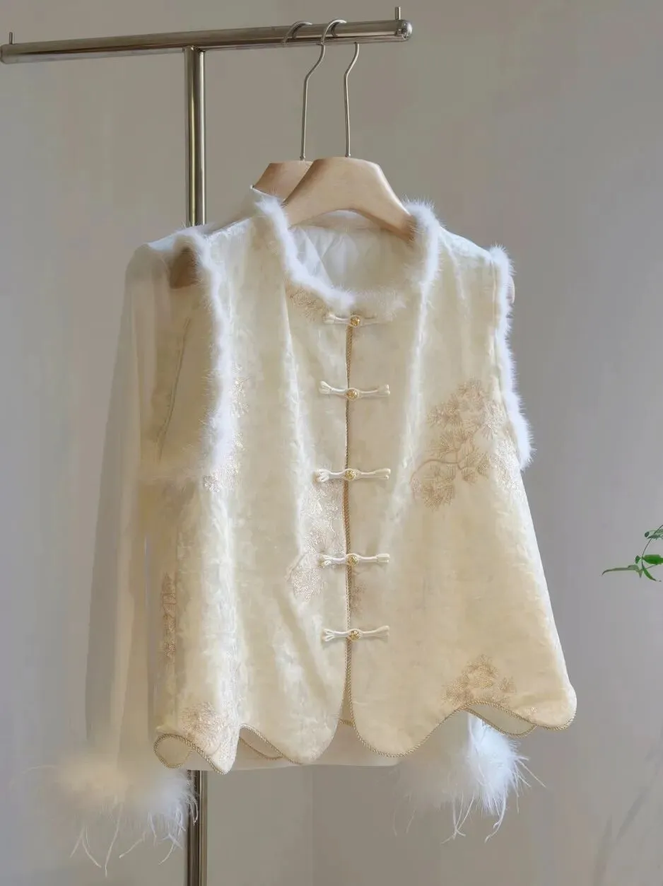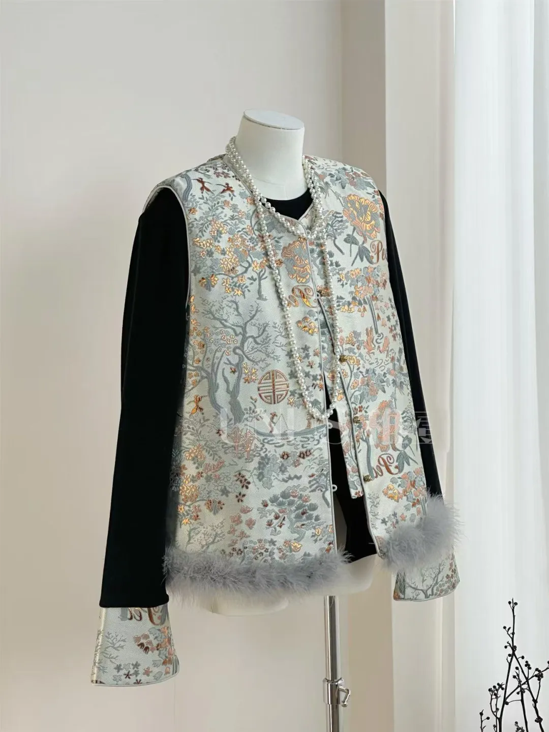 这次炸炸选的马甲真的都超美,采用手工刺绣、非遗宋锦提花、天然鸵鸟毛和水貂毛装饰还有手工盘扣等重工繁琐工艺。