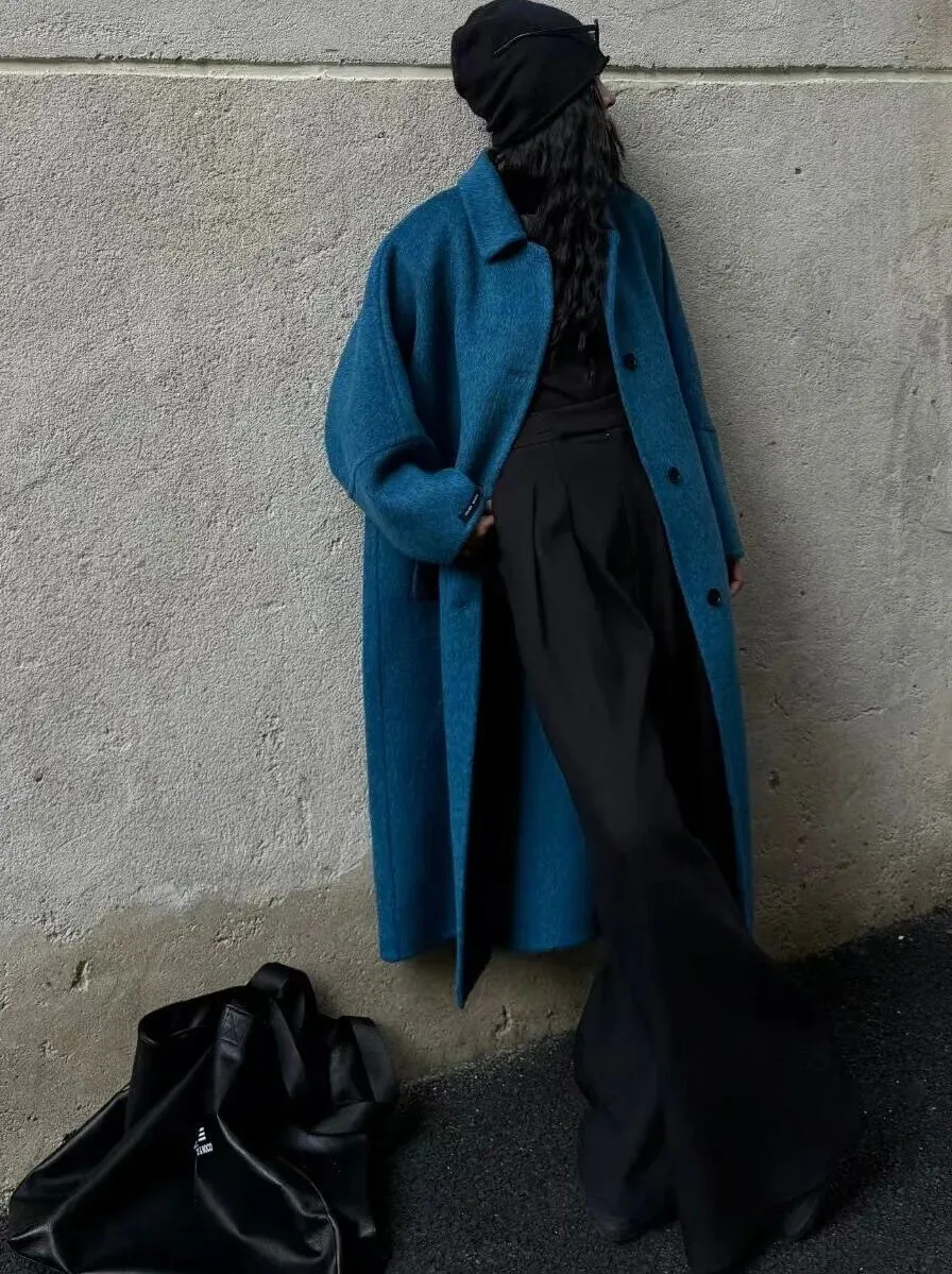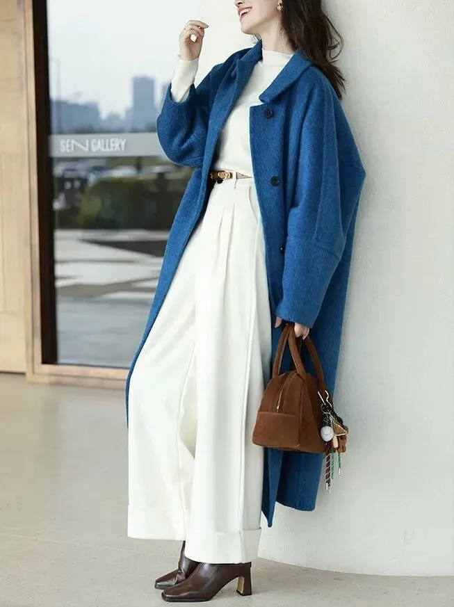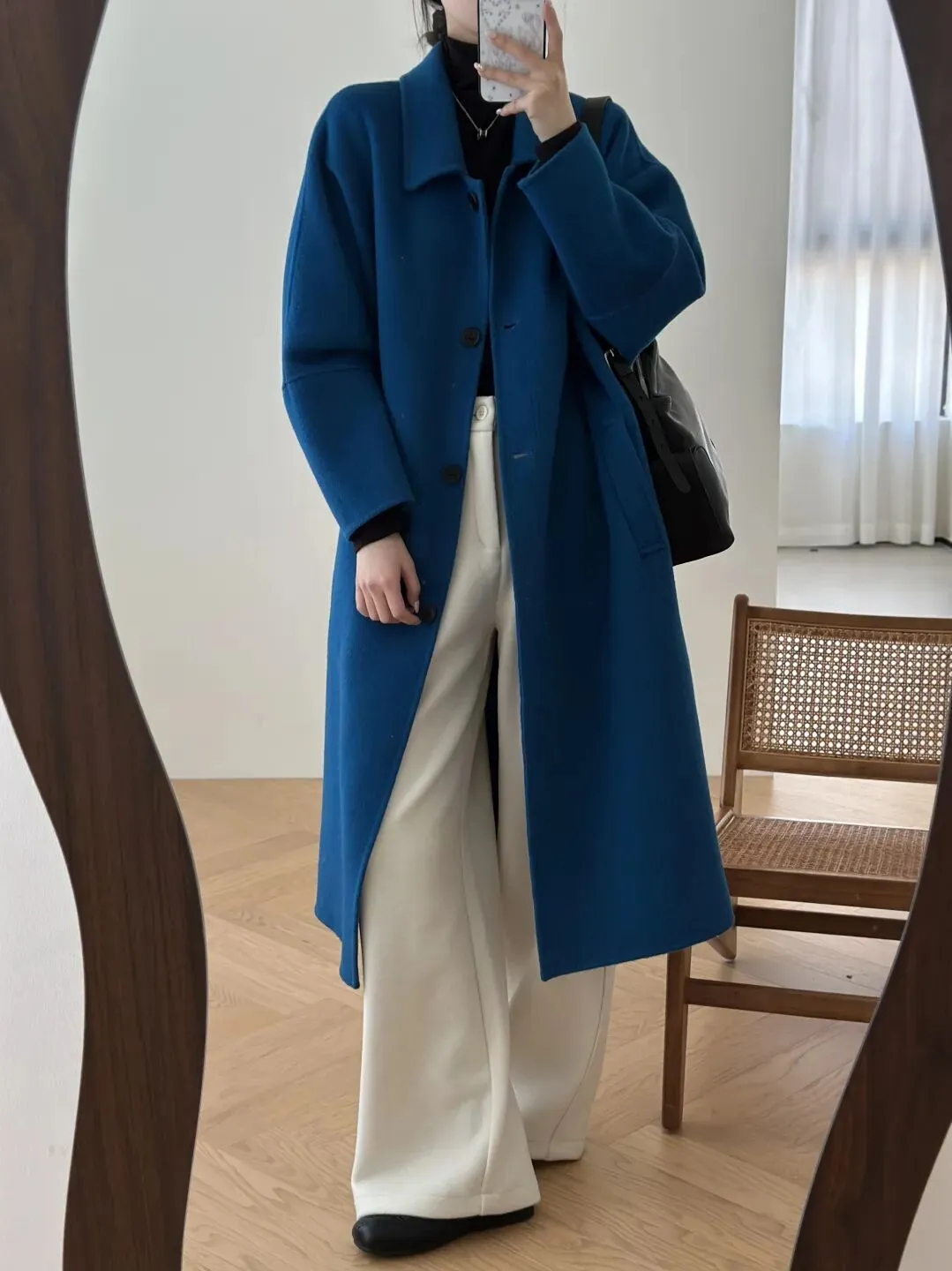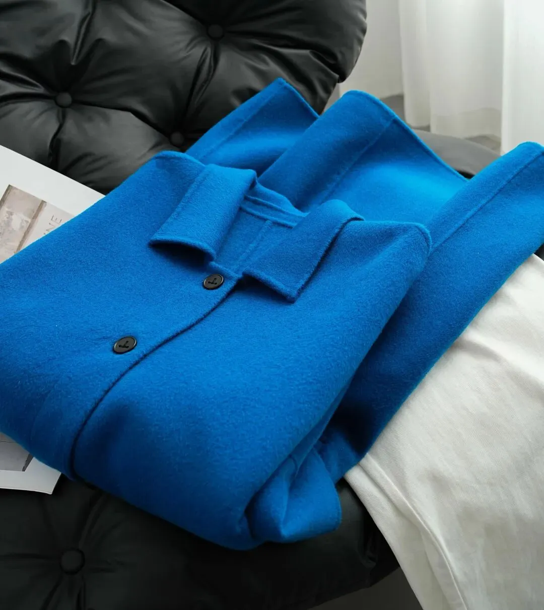 蓝色澳毛双面羊毛大衣