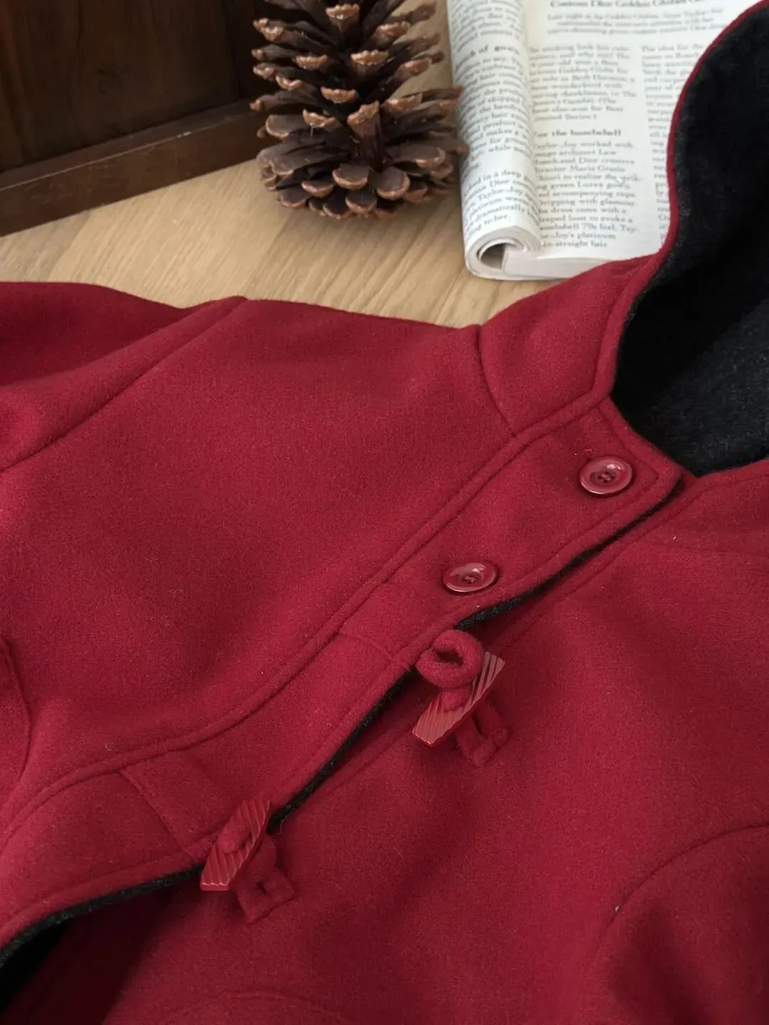 细节上也是做得很好,这设计师一定是个完美主义来的,同色系纽扣+手工缝制牛角扣+复古设计,