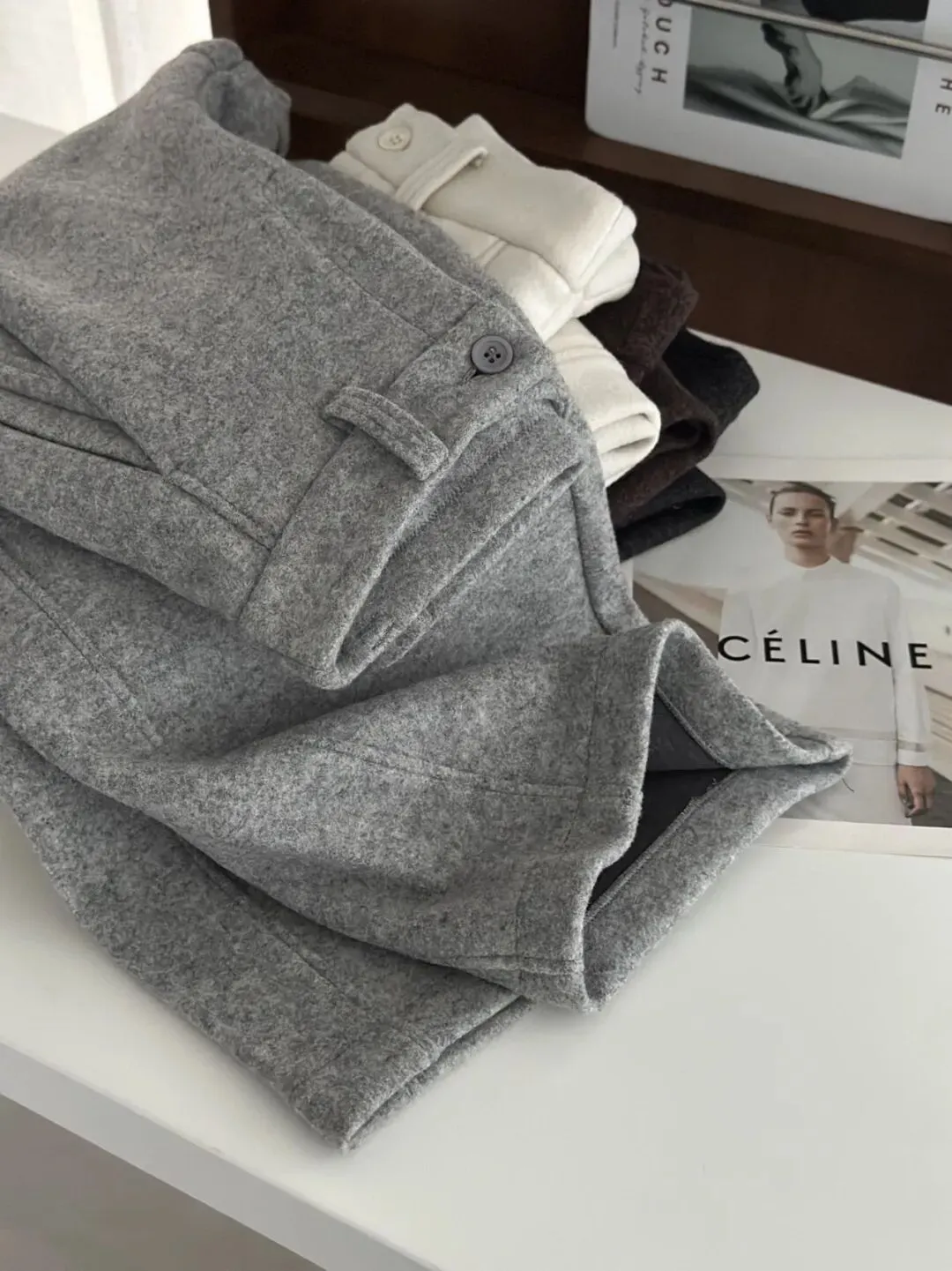 以及烟灰色就是偏浅的灰色,浅灰会更加凸显面料的纹理,质感就是在这里凸显出来。