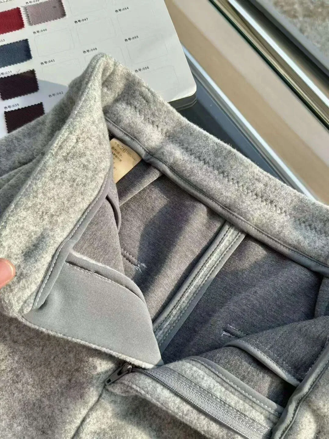 打开窗户有点自然光更是拿捏细节控的王牌面料,面料表层含有15.1%的绵羊毛。